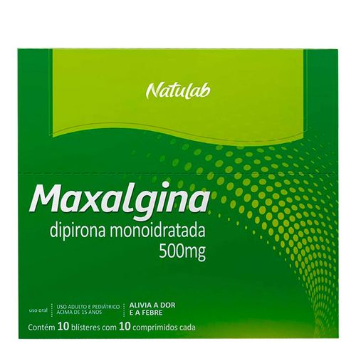 O Maxalgina 500mg Natulab possui efeito analgésico e antitérmico e é indicado para aliviar quadros de dores em geral e febre. O medicamento promove efeito após 30 a 60 minutos, se mantendo ativo por 4 horas. É contraindicado para menores de 3 meses. A embalagem contém 10 comprimidos.