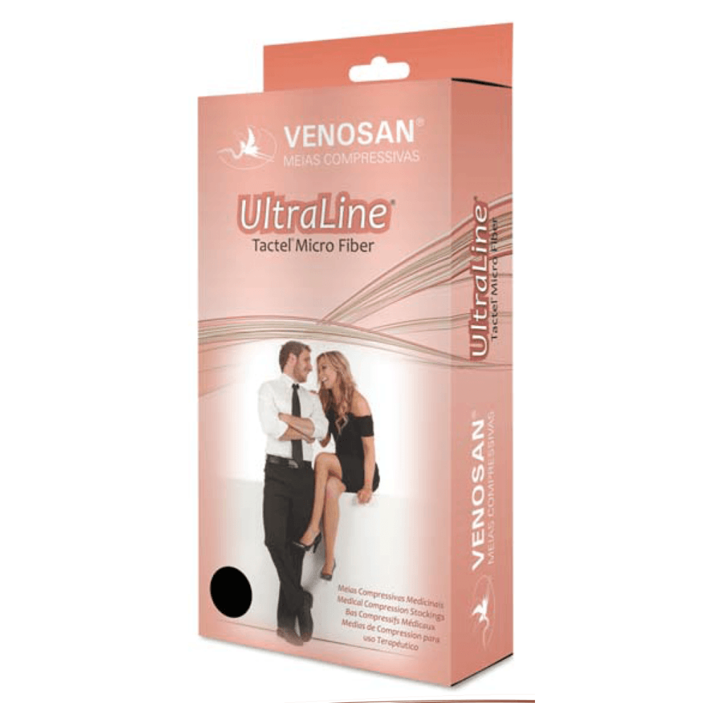 As meias e braçadeiras Ultraline são de compressão decrescente graduada, fabricadas com base em micro?bras Tactel, ?os e malhas com efeito climático para ativação respiratória, oferecendo uma agradável sensação climática. Evita complicações dermatológicas garantindo maior elasticidade e conforto no seu dia-a-dia. Mais confortáveis, sedosas e fáceis de calçar. INDICAÇÕES 20 - 30 mmHg Média compressão Sensação de peso e fadiga nas pernas Varizes durante a gravidez Varizes com tendência para edema Após escleroterapia de pequenas veias Disponível nos modelos ponta do pé aberta ou fechada. 30 - 40 mmHg Alta compressão Varizes com edema Varizes severas durante a gravidez Após ?ebotrombose super?cial Após escleroterapia ou ?ebectomia de grandes veias Insu?ciência venosa crônica COMPOSIÇÃO 71% Poliamida / Nylon 29% Elastano / Spandex