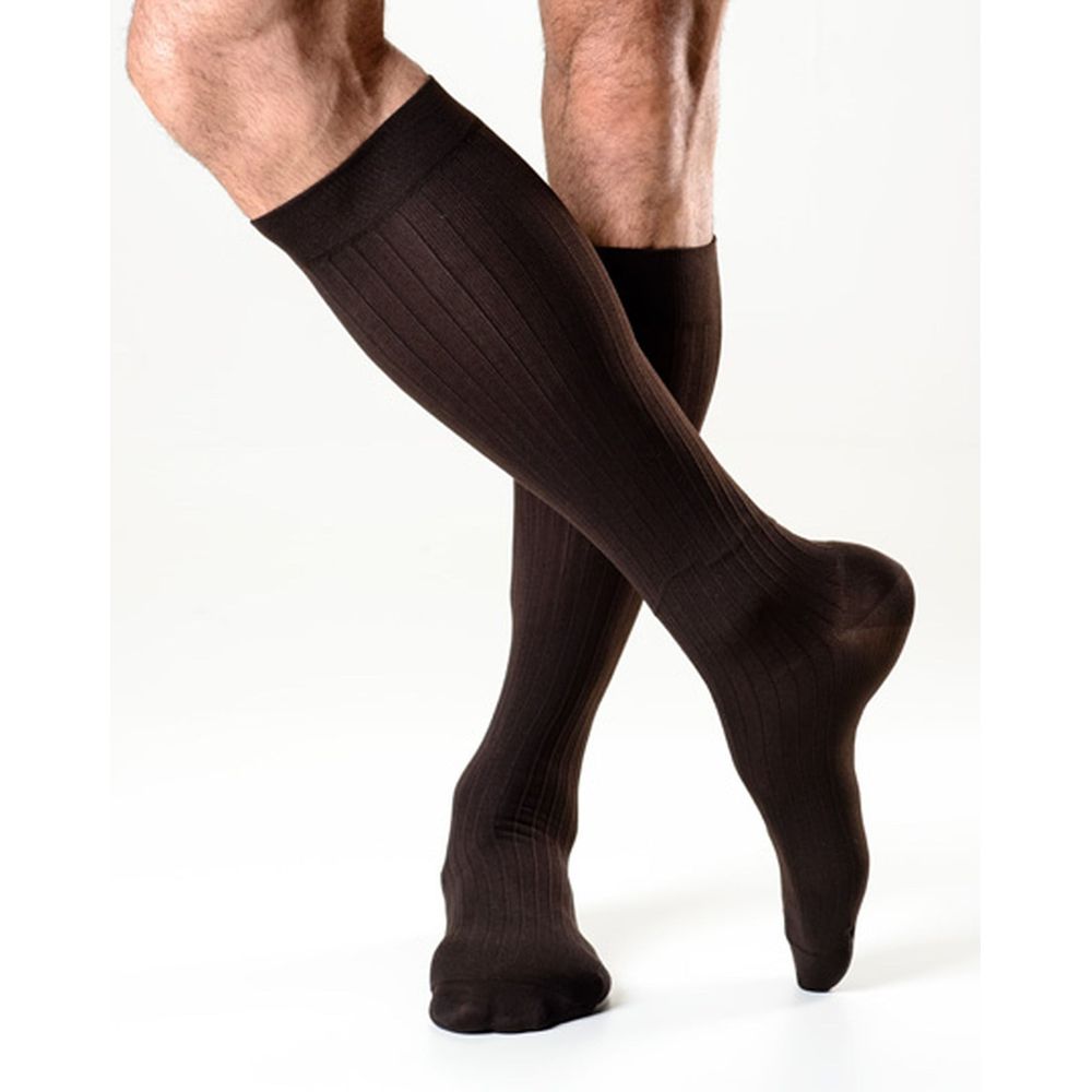 A meia Style Elegância Actitud foi desenvolvida exclusivamente para o público masculino. Canelada, elegante, confortável e eficaz para prevenir dores, inchaços, sensação de peso nas pernas e para tratar doenças venosas e linfáticas leves e moderadas.