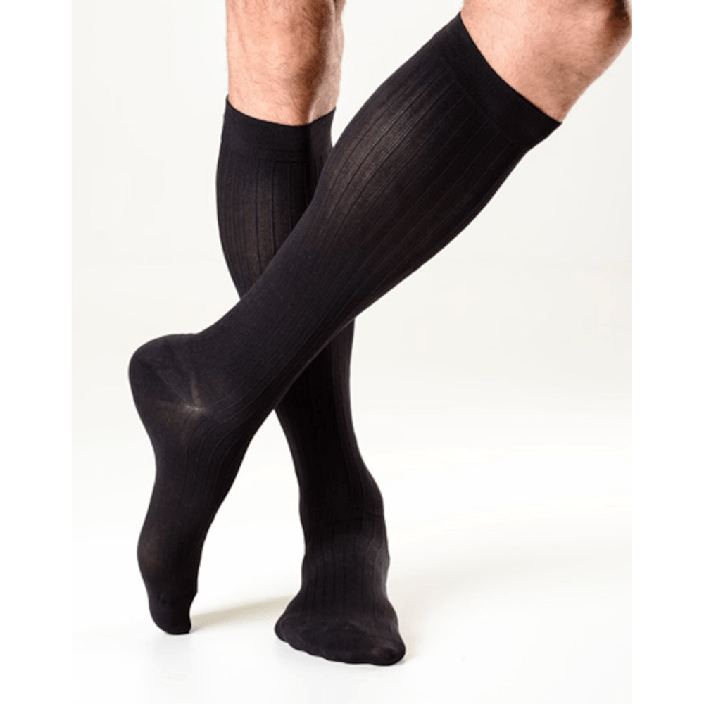 A meia Style Elegância Actitud foi desenvolvida exclusivamente para o público masculino. Canelada, elegante, confortável e eficaz para prevenir dores, inchaços, sensação de peso nas pernas e para tratar doenças venosas e linfáticas leves e moderadas.