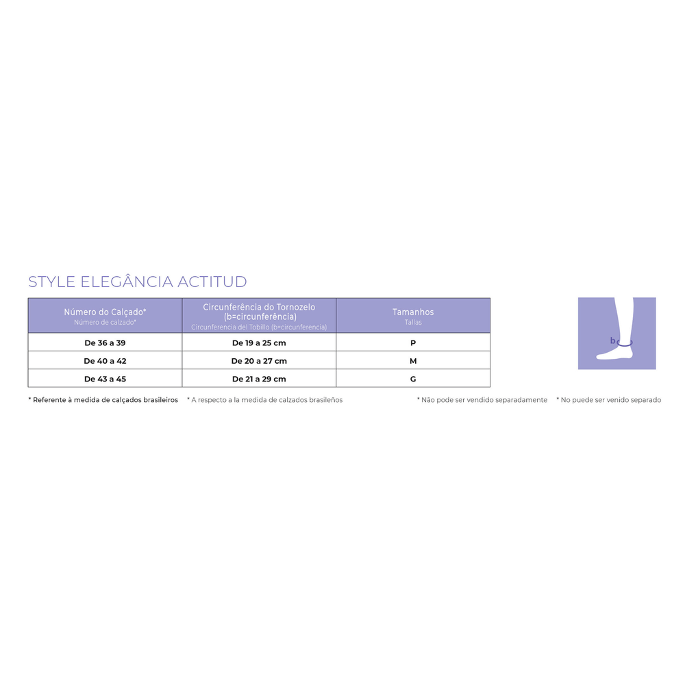 A meia Style Elegância Actitud foi desenvolvida exclusivamente para o público masculino. Canelada, elegante, confortável e eficaz para prevenir dores, inchaços, sensação de peso nas pernas e para tratar doenças venosas e linfáticas leves e moderadas.