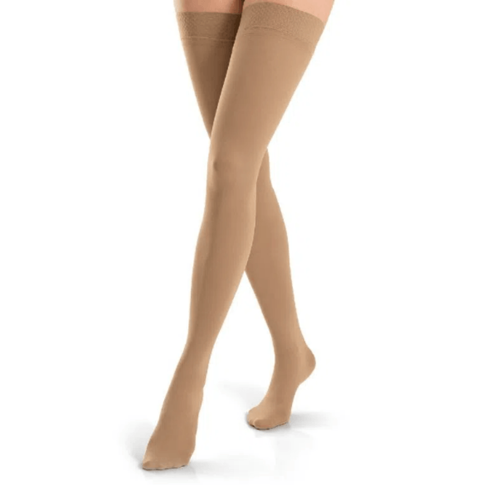Meia Elástica Panturrilha Ponteira Fechada Compressão 15-20 mmHg Natural - Jobst Opaque desenvolvida para homens que passam muito tempo em pé ou sentados e que tem sensação de peso e inchaço nas pernas.Composição: Tamanhos: P, M e G. Ponteira: Fechada. Compressão: 15-20 mmHg. Cor: Natural.;Informação Adicional: Auxilia na prevenção e tratamento de varizes e de trombose venosa; Tem alta durabilidade, é macia, leve e permite a respiração adequada da pele; Exerce a compressão correta desde o tornozelo, facilitando o retorno venoso e reduzindo a sensação de pernas cansadas, dor e edema (inchaço); Para a escolha do tamanho correto, faça a medida da circunferência do tornozelo e da circunferência da panturrilha (parte central).;
