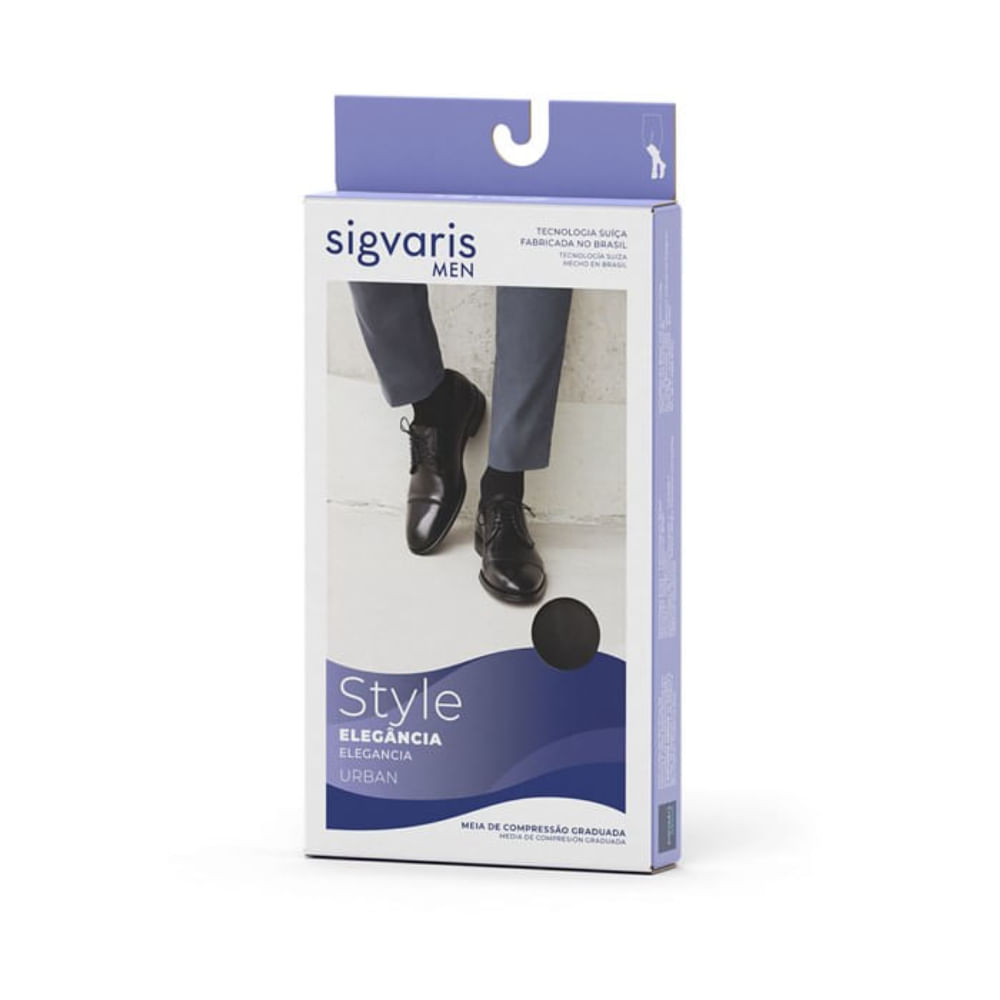 A Style Elegância Urban é uma meia social lisa, com compressão graduada, desenvolvida para o público masculino. Confeccionada com microfibra, que facilita a transferência da umidade da pele, promove saúde às pernas e alivia sintomas como: pernas doloridas e cansadas, tornozelos e pés inchados. Com design moderno e solado reforçado é um produto ideal para uso diário.
