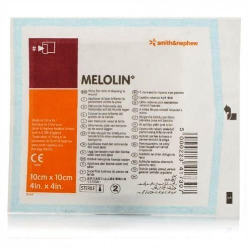 MELOLIN é um curativo que consiste de uma camada absorvente de não tecido, contendo algodão e fibras de poliéster.