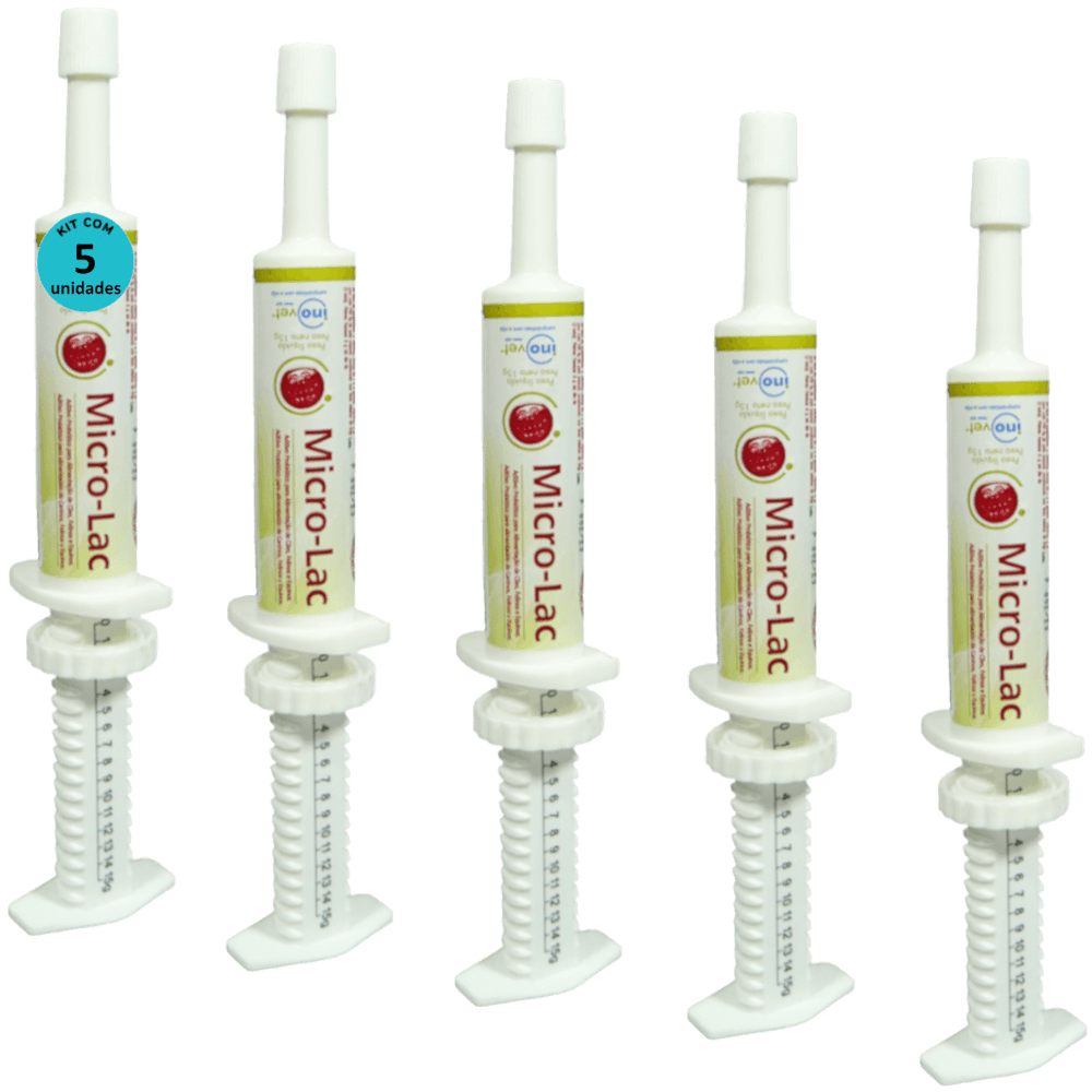 Micro - Lac Aditivo Probiótico Para Cães Gatos Equínos 15g Kit Com 5