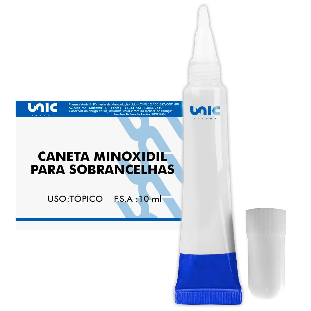 Caneta minoxidil para sobrancelhas 10mlA loção de Minoxidil age normalizando e estimulando o crescimento dos pelos na região da sobrancelha.Uma sobrancelha bem feita e volumosa é considerada muito importante para a aparência da face, por isso a sobrancelha é cada vez mais almejada, especialmente pelas mulheres.Dessa forma, o Minoxidil em loção auxilia quem busca uma sobrancelha mais volumosa e espessa, longe das falhas.Além de estimular o crescimento da sobrancelha, a loção apresenta praticidade e conforto na hora da aplicação.Conheça mais sobre Minoxidilem nosso conteúdo exclusivo.BenefíciosEstimula a produção de novos fiosReduz a quedaFortificante e nutritivo.PosologiaAplicar nas sobrancelhas 2x ao dia.Composição sugeridaPorção: 10mlQuantidade por porção:Minoxidil 5%Àlcool Etilico 70%Serum 10mlConfira outros produtos com minoxidil clicando aquiComo crescer sobrancelha com Minoxidil?O Minoxidil em loção auxilia quem busca uma sobrancelha mais volumosa e espessa, longe das falhas. Além de estimular o crescimento da sobrancelha, a loção apresenta praticidade e conforto na hora da aplicação.O que é Minoxidil e para o que funciona?OMinoxidilestimula o crescimento capilar ao aumentar a circulação sanguínea no local aplicado e prolongando a fase anágena – fase de crescimento dos cabelos. Como resultado, ocorre um engrossamento dos fios.O que pode causar falhas na sobrancelha?A retirada excessiva de pelos (pinçamento) e os traumatismos frequentes com o uso de lápis para realçar as sobrancelhas são causas comuns de perdas pequenas de pelos nessas áreasO que fazer para engrossar a sobrancelha?Para deixar a sobrancelha mais grossa e volumosa, o ideal é aplicar a caneta minoxidil 2x ao dia. A cada três meses de uso, é preciso fazer uma pausa de duas semanas do remédio. A partir do segundo mês de uso já é possível ver o resultado aparecendo. Sobrancelhas mais cheias, com pelos novos e mais resistentes vão aparecer.Qual produto usar para crescer sobrancelha?Se você busca uma sobrancelha bem feita e volumosa, a Caneta Minoxidil para sobrancelha é ideal. ela age normalizando e estimulando o crescimento dos pelos na região, auxiliando quem busca uma sobrancelha com mais fios, espessa e longe das falhas.Quanto tempo para perceber os resultados usando a caneta Minoxidil?A partir do segundo mês de uso já é possível ver o resultado aparecendo. Geralmente, os resultados mais expressivos são a partir do terceiro mês.Quais os benefícios da caneta Minoxidil para sobrancelha?Minoxidil ajuda a revitalizar a raiz dos fios, normalizar o ciclo de formação e desenvolvimento do cabelo, prolongando a fase de crescimento. Seu efeito diminui a queda e faz com que o as falhas se preencham, proporcionando sobrancelhas mais completas e bonitas.Como usar oMinoxidilpara as sobrancelhas crescerem?Aplicar nas sobrancelhas 2x ao diaQual o melhor Minoxidil para sobrancelha?Acaneta Minoxidilpara Sobrancelha é indicada para essa área, pois seu aplicador já foi pensado e desenvolvido para isso. Assim, não ocorrendo o risco de pingar em lugares inapropriados. Sua solução contém 5% de minoxidil e sua solução é de uso tópico, indicada para aplicação nas áreas com falhas das sobrancelhas, onde os fios já não crescem mais.Minoxidil para sobrancelha realmente funciona?A Resposta é sim. No caso da região, os efeitos são satisfatórios e, se tratando de uma área de nascimento de pelos com particularidades diferentes do couro cabeludo, os resultados podem ser vistos ainda mais rápido.Usar Minoxidil, existem contraindicações?De forma geral, todo mundo pode usar o Minoxidil para sobrancelha. A não ser, claro, que você tenha alergia a algum componente da fórmula. Contudo, aconselhamos você a consultar um especialista no assunto antes de começar o tratamento. Um dermatologista, inclusive, também poderá indicar qual a melhor concentração do minoxidil no seu caso.Preciso interromper o uso de Henna nas sobrancelhas?Não é necessário. Pode usar a caneta Minoxidil, sem problemas!Sobrancelhas com micropigmentação podem usar a caneta Minoxidil?Sim, pode usar A caneta Minoxidil!Quais os relatos de quem usou Minoxidil para crescimento da sobrancelha?Os relatos a respeito do uso deMinoxidilpara o crescimento de pelos nas sobrancelhas que encontramos são todos muito positivos e satisfatórios. As mulheres que testaram parecem renovadas com a chance de ter enfim a sobrancelha que sonharam, vistosa e cheia.Minoxidil para sobrancelha, qual preço? Onde comprar?A Caneta Minoxidil para sobrancelhavocê encontra na Unicpharma, farmácia de manipulação, com entrega para todo o Brasil, a partir de R$29,90 à vista ou em até 6x de R$4,98 sem juros.*Não se trata de propaganda, e sim de descrição do produto, consulte sempre um especialista. **Venda Sob prescrição de profissional habilitado, podendo este ser o nosso farmacêutico de acordo com a resolução 586/2013 do conselho de farmácia. Consulte-o. Sugestão de uso e benefícios desenvolvidos por profissional habilitado. Todo produto deste site possui dosagens dentro dos padrões usuais.Advertências* Estiver Grávida Ou Amamentando, Consulte Um Médico Antes De Usar Este Produto.* Mantenha Fora Do Alcance De Crianças. Guarde Em local frio e seco. * Não misturar esse medicamento com outro tipo de estimulante drogas ou bebida alcoólica.1. Nunca compre medicamento sem orientação de um profissional habilitado.2. Imagens meramente ilustrativas.s3. É recomendável uma dieta e exercícios físicos para auxiliar a redução de "peso".4. Pessoas com hipersensibilidade à substância não devem ingerir o produto. 5. Em caso de hipersensibilidade ao produto recomenda- se descontinuar o uso e consultar o médico.6. Não use o medicamento com o prazo de validade vencido.7. Manter em temperatura ambiente (15 a 30ºC). Proteger da luz do calor e da umidade. Nestas condições o medicamento se manterá próprio p