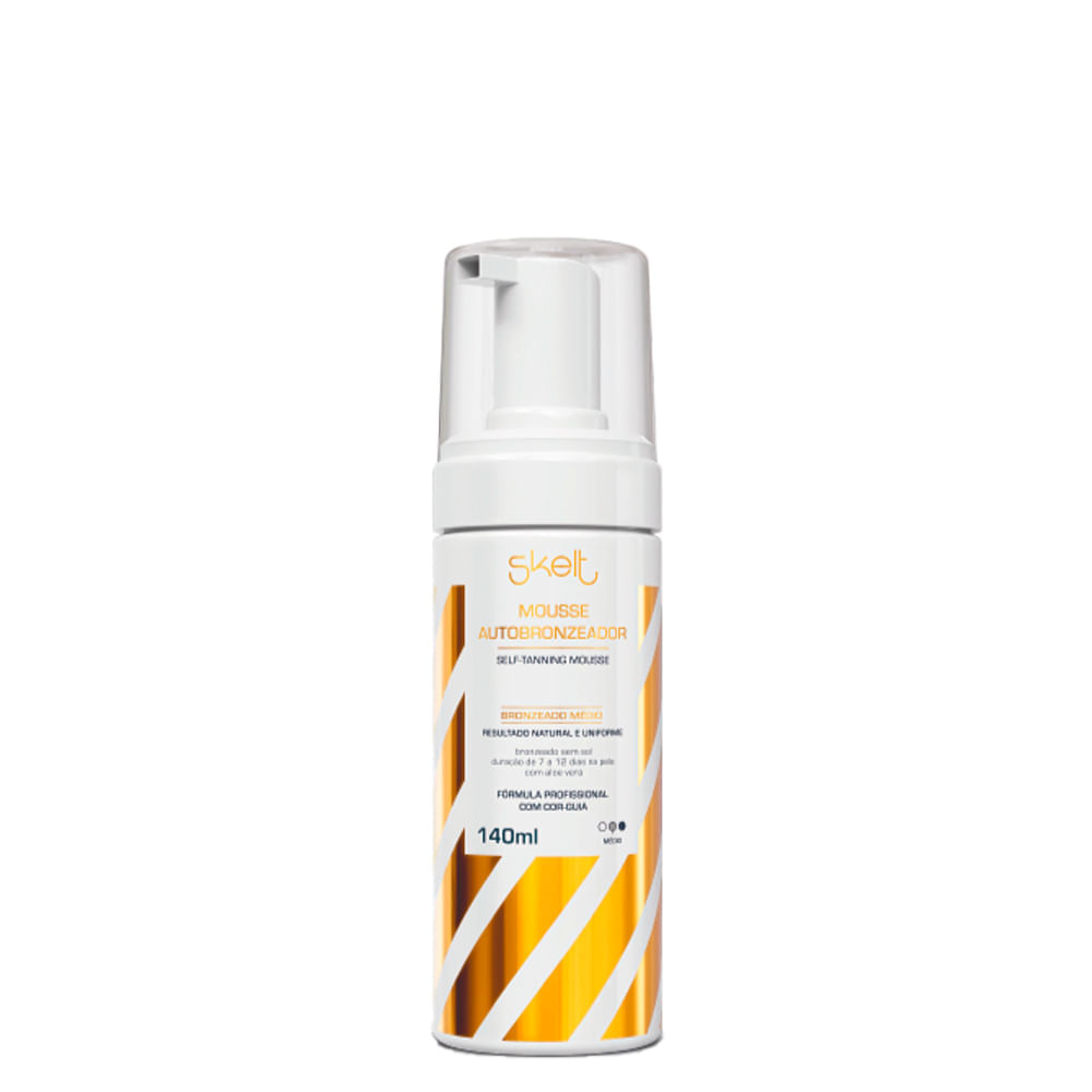 Mousse Autobronzeador Corporal Skelt Red Carpet Glow 140ml – Bronzeado Natural, Aplicação Sem Manchas e Resultado DuradouroMousse autobronzeador indicado para todos os tipos de pele, inclusive peles sensíveis. O Mousse Autobronzeador Corporal Skelt Red Carpet Glow com 140ml proporciona bronzeado médio e natural, com controle sobre a intensidade e duração de 7 a 12 dias, ideal para quem busca um tom dourado uniforme sem exposição ao sol.Desenvolvido com cor-guia terrosa, permite aplicação precisa e homogênea, evitando manchas e facilitando o espalhamento. A fórmula leve em mousse assegura secagem rápida, sem transferência para as roupas, e oferece sensação de frescor imediato. Com alto nível de tolerância comprovada em testes dermatológicos, é 100% vegano, livre de crueldade animal e seguro para uso frequente.A tecnologia avançada do produto combina eficácia e praticidade, garantindo confiança desde a primeira aplicação. Ideal para iniciantes, permite ajustar a intensidade do bronzeado conforme o tempo de permanência na pele — entre 6 e 8 horas para resultados perfeitos. A fragrância suave e agradável prolonga a experiência sensorial, reforçando a sensação de pele saudável, macia e com aparência profissional.Benefícios do Mousse AutobronzeadorBronzeado natural com duração de 7 a 12 dias.Cor-guia que evita manchas e facilita a aplicação.Textura em mousse de rápida absorção e secagem.Controle total sobre a intensidade do tom dourado.Hidratação prolongada graças à presença de aloe vera e ácido lático.Seguro para todos os tipos de pele, com tolerância dermatológica comprovada.Rendimento de 5 a 8 aplicações completas.Ação e TecnologiaDihydroxyacetone (DHA): Ingrediente ativo que reage com aminoácidos na superfície da pele, gerando pigmentação gradual e natural sem exposição solar.Ácido Lático: Atua como esfoliante suave, promovendo renovação celular e melhorando a uniformidade do bronzeado.Aloe Vera: Possui propriedades calmantes e hidratantes, aumentando a tolerância e suavidade da pele.Erythrulose: Complementa a ação do DHA, proporcionando tonalidade mais uniforme e duradoura com desenvolvimento gradual.Cor-guia terrosa: Permite visualização em tempo real da aplicação, evitando áreas duplas ou falhas.Essa combinação inteligente de ativos assegura máxima eficácia e uniformidade, com resultado visualmente impecável e progressivo nas 24 horas seguintes à aplicação. A fórmula testada dermatologicamente respeita a integridade da barreira cutânea, mantendo a hidratação e a maciez por todo o período do bronzeado.Como Usar o Mousse Autobronzeador Corporal Skelt Red Carpet GlowLimpe e esfolie a pele para preparar uma superfície uniforme e livre de células mortas.Com a luva aplicadora (não inclusa), aplique uma camada fina do mousse sobre o corpo em movimentos circulares.Deixe agir por 6 a 8 horas para obter um bronzeado médio a intenso, dependendo da tonalidade desejada.Remova o produto com água morna e sabonete suave, evitando esfregar.Aguarde até 24 horas para o bronzeado se desenvolver plenamente e alcance sua tonalidade máxima.Similares - Thumb de Cor: Glow;