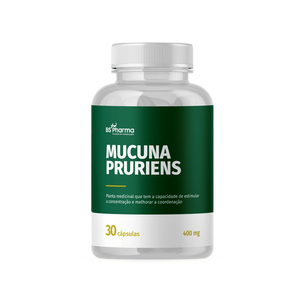 O que é MucunaA Mucuna pruriens é uma planta medicinal popular da Índia, utilizada na medicina tradicional para melhorar a concentração, a força e a mobilidade física, além revigorar o desejo e a vitalidade.Benéficos da MucunaA Mucuna é um produto natural com muitos benefícios para a saúde. Cuida da mente, dos músculos, da circulação, aumenta a imunidade, dá energia, força, e proporciona um estado de bem-estar geral.A Mucuna pruriens é capaz de estimular o estado de alerta e melhorar a coordenação motora. Possui efeito benéfico sobre a saúde mental e emocional pois seus ativos ajudam na produção de dopamina, o mensageiro químico responsável pela sensação de alegria, prazer e ânimo.Além disso, Mucuna também é conhecida por melhorar o vigor e a vitalidade.Propriedades da MucunaEla é reconhecida por suas propriedades estimulantes e revigorantes, por seus efeitos hipoglicemiante (reduz os níveis de glicose no sangue) e hipocolesterolêmico (reduz os níveis de colesterol no sangue), além de intensificar a deposição de proteínas nos músculos e promover o aumento da força e da massa muscular.A Mucuna pruriens também possui propriedade antimicrobiana, antiprotozoária, antioxidante e anti-inflamatória.Apresentação: 30 cápsulas.;Recomendações de uso: Tomar 01 cápsula ao dia.;Imagem: MEMÓRIA ATIVA E MOVIMENTOS FIRMES A Mucuna estimula a concentração e melhora a coordenação motora. É cuidado, saúde e bem-estar para sua mente, suas emoções e seu corpo. Aproveite. ;Composição: Mucuna pruriens 400mg; Excipiente qsp 1 cápsula. Cápsula gelatinosa. NÃO CONTÉM GLÚTEN.;Validade: 06 meses após data de manipulação.;Registro MS: Armazenar protegido de luz, calor e umidade. Manter a embalagem fechada após o uso.;Embalagem: Frasco com 30 cápsulas e lacre de proteção.;Informação Nutricional: Gestantes, lactantes, crianças e portadores de alguma enfermidade devem sempre ser orientados pelos seus prescritores antes de fazer uso de qualquer substância. Imagens meramente ilustrativa.;