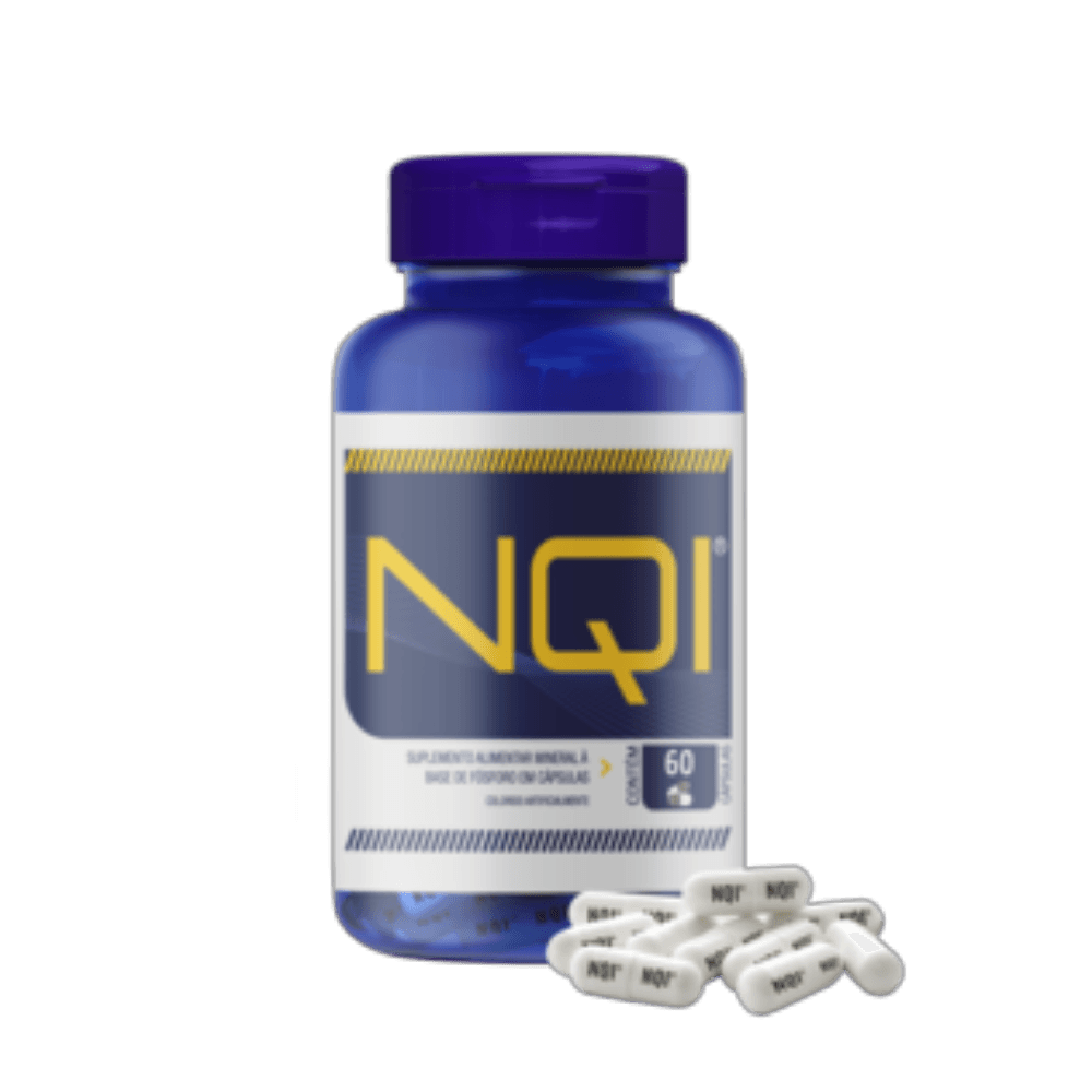 NQI®É um suplemento mineral à base de fósforo em cápsulas, sem semelhante. Trata-se de uma combinação exclusiva de fosfatos bioativos,fundamentais para o metabolismo orgânico.Esse nutriente reveste todas as células do corpo e participa do processo de crescimento dos tecidos. INGREDIENTES: Fósforo e cápsula de gelatina (gelatina e corante inorgânico dióxido de titânio). NÃO CONTÉM GLÚTEN. ALÉRGICOS: PODE CONTER DERIVADOS DE SOJA E LEITE DE VACA.RECOMENDAÇÃO DE USO: Ingerir 4 cápsulas ao dia ou conforme orientação de nutricionista ou médico.Não consumir mais que 4 cápsulas ao dia.De preferência em jejum com bastante água.