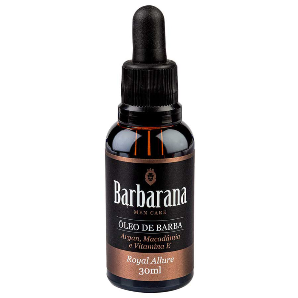 Óleo de Barba - Barbarana - 30 mlO Óleo de Barba Barbarana foi especialmente desenvolvido para você condicionar e tratar os fios da sua barba. Com óleos essenciais e vitaminas, alivia a coceira e ajuda na cicatrização das irritações da sua pele. Feito para você que deseja uma barba forte, hidratada, com brilho e elasticidade. Sua fórmula auxilia no crescimento de uma barba forte e saudável. O Óleo de Barba Barbarana é envasado em embalagem de vidro âmbar que garante maior proteção contra os raios UV e mantém as propriedades antioxidantes dos óleos essenciais, aumentando a vida útil do produto. Textura: Oleosa com uma densidade mais encorpada. Características:Hidrata profundamente os fios da sua barba.Estimula o crescimento saudável dos fios.Mantém os fios alinhados e macios por mais tempo.Alivia o ressecamento, a irritação e a coceira da pele sob a barba.Indicado para todos os tipos de barba.Uso diário.Ativos Naturais:Óleo de Argan – Promove intensa hidratação e brilho nos fios da barba, formando uma camada protetora contra a agressão de agentes externos. Melhora a elasticidade dos fios, estimula o seu crescimento, protege contra pontas duplas e possui ação anti-frizz. Sua ação antioxidante, auxilia na restauração do pH natural da pele sob a barba, regula a oleosidade, promove a renovação celular e trata as irritações da pele do rosto. Óleo de Macadâmia – Rico em substâncias antioxidantes, ácidos graxos, vitaminas e minerais que auxiliam na prevenção do envelhecimento precoce da pele e dos fios da barba. Por sua extrema afinidade com os óleos naturais da pele, possui alto poder de absorção, promovendo hidratação, nutrição, reparação e aumento na elasticidade das fibras capilares. Atua na diminuição do frizz e na proteção contra danos externos. Vitamina E – Sua ação antioxidante neutraliza os danos causados pelos radicais livres e sua ação anti-inflamatória, calmante e cicatrizante auxilia na recuperação da pele e dos fios da barba. Silicone Nobre: Silicone de alta qualidade que proporciona proteção térmica e combate o indesejado frizz, deixando os fios mais alinhados e com uma melhor aparência. Aumentando a facilidade de pentear e deixando a barba mais suave e sedosa ao toque.