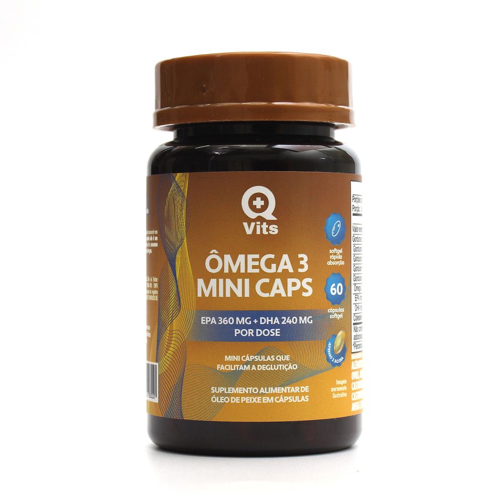Ômega 3 Mini Caps: Suplemento com EPA e DHA em Cápsulas Softgel para Saúde Cardiovascular, Cerebral e Ocular com Rápida Absorção - VIT-223 O Ômega 3 DHA 360mg EPA 240mg QMaisVits 60 Mini Caps é um suplemento essencial para manter a saúde cardiovascular, cerebral e ocular em dia. O ômega 3 é uma gordura saudável, amplamente recomendada por médicos devido aos seus inúmeros benefícios à saúde, especialmente por conter ácidos graxos EPA (360mg) e DHA (240mg) em cada porção. Esses ácidos graxos são vitais, pois o corpo não consegue produzi-los, sendo obtidos apenas por meio da alimentação ou suplementação. Extraído de óleo de peixe cultivado em águas profundas e frias, o Ômega 3 QMaisVits passa por um rigoroso processo de purificação para remover toxinas, como metais pesados, garantindo um produto de alta qualidade. O EPA e o DHA são conhecidos por suas funções neuroprotetoras, contribuindo para o melhor funcionamento cognitivo, incluindo a melhoria da memória, raciocínio e aprendizado. Além disso, esses ácidos graxos auxiliam na redução dos processos inflamatórios no corpo, tornando o produto ideal para quem pratica esportes de impacto ou busca manter a saúde articular. Um dos principais benefícios do Ômega 3 é sua capacidade de ajudar no controle dos níveis de colesterol, reduzindo o LDL (colesterol ruim) e auxiliando na manutenção de níveis saudáveis de triglicerídeos. Isso faz com que o suplemento seja altamente benéfico para a saúde cardiovascular, colaborando também para a prevenção de doenças cardíacas e no fortalecimento do sistema imunológico. Outro destaque do Ômega 3 QMaisVits é seu formato de Mini Caps softgel, que oferece rápida absorção e facilita a ingestão, sendo ideal para quem tem dificuldade em engolir comprimidos maiores. Essas cápsulas promovem uma entrega mais eficaz dos nutrientes ao organismo, maximizando seus benefícios e resultados. Com 60 cápsulas por embalagem, o Ômega 3 QMaisVits é suficiente para um mês de uso contínuo, proporcionando suporte diário para a saúde do coração, do cérebro e dos olhos. Ao incluir esse suplemento na sua rotina, você estará garantindo uma dose poderosa de EPA e DHA, que ajudará a nutrir seu corpo de dentro para fora e promover uma vida mais equilibrada e saudável. Modo de uso: Recomenda-se tomar 2 cápsulas ao dia, junto com as refeições principais, para melhor absorção. Principais Benefícios do Produto:. Fortalece a saúde cardiovascular, cerebral e ocular.. Contém 360mg de EPA e 240mg de DHA por porção.. Auxilia na redução do LDL (colesterol ruim) e na manutenção de triglicerídeos saudáveis.. Cápsulas MiniCaps softgel de rápida absorção e fácil ingestão.. Ajuda na melhoria da memória, raciocínio e funções cognitivas.. Auxilia na redução da inflamação no corpo e na saúde das articulações.. Fortalece o sistema imunológico.. Suplemento de alta pureza, com processo rigoroso de purificação.. Ideal para praticantes de esportes de impacto e pessoas que desejam melhorar sua saúde.. Produto concentrado, prático para a rotina diária.. Cápsulas com nova tecnologia softgel de alta absorção. Advertências. Conservar ao abrigo da luz, calor e umidade. Após aberto, consumir em até 60 dias.. Produto indicado para adultos acima de 19 anos.. Este produto não é um medicamento.. Não exceder a recomendação diária de consumo indicada na embalagem.. Mantenha fora do alcance de crianças.. Consulte sempre seu médico e/ou nutricionista.. Mantenha o produto fora do alcance das crianças. INGREDIENTES: . Óleo de peixe. Água purificada. Gelificante gelatina. Umectante glicerol e antioxidante mistura concentrada de tocoferóis FAQ:1. O que é o Ômega 3 e para que ele serve?O Ômega 3 é um ácido graxo essencial que o corpo não consegue produzir sozinho, sendo obtido apenas através da alimentação ou suplementação. Ele é conhecido por seu papel importante na manutenção da saúde cardiovascular, cerebral e ocular. Além disso, o ômega 3 ajuda a reduzir o colesterol ruim (LDL) e a manter níveis saudáveis de triglicerídeos. Ele também tem propriedades anti-inflamatórias, sendo benéfico para a saúde das articulações e para a imunidade. 2. Quais são os benefícios de tomar cápsulas softgel de ômega 3?As cápsulas softgel são uma forma prática e eficaz de consumir o ômega 3. Elas oferecem rápida absorção, garantindo que os ácidos graxos EPA e DHA sejam entregues ao organismo de maneira eficiente. Além disso, as cápsulas MiniCaps do Ômega 3 QMaisVits são pequenas e fáceis de engolir, sendo ideais para pessoas que têm dificuldade em tomar comprimidos grandes. 3. Como o Ômega 3 pode ajudar na saúde do coração?O Ômega 3 desempenha um papel fundamental na saúde cardiovascular. Ele ajuda a reduzir os níveis de colesterol LDL (colesterol ruim) e a manter os níveis de triglicerídeos sob controle, fatores importantes para prevenir doenças cardíacas. Além disso, o ômega 3 contribui para a saúde dos vasos sanguíneos e auxilia na redução da inflamação no corpo, o que também é benéfico para o coração. 4. Quais são as diferenças entre EPA e DHA no Ômega 3?O EPA (ácido eicosapentaenoico) e o DHA (ácido docosa-hexaenoico) são dois tipos de ácidos graxos ômega 3 que desempenham diferentes funções no corpo. O EPA é mais conhecido por suas propriedades anti-inflamatórias, enquanto o DHA é crucial para a saúde cerebral e o desenvolvimento cognitivo. Ambos os ácidos graxos trabalham juntos para fornecer benefícios para a saúde do coração, cérebro e articulações. 5. Quando devo tomar o Ômega 3 QMaisVits?Recomenda-se tomar 2 cápsulas de Ômega 3 ao dia, de preferência junto com as principais refeições, para garantir uma melhor absorção dos ácidos graxos. O uso contínuo do suplemento é importante para garantir os benefícios de longo prazo, como a manutenção da saúde c