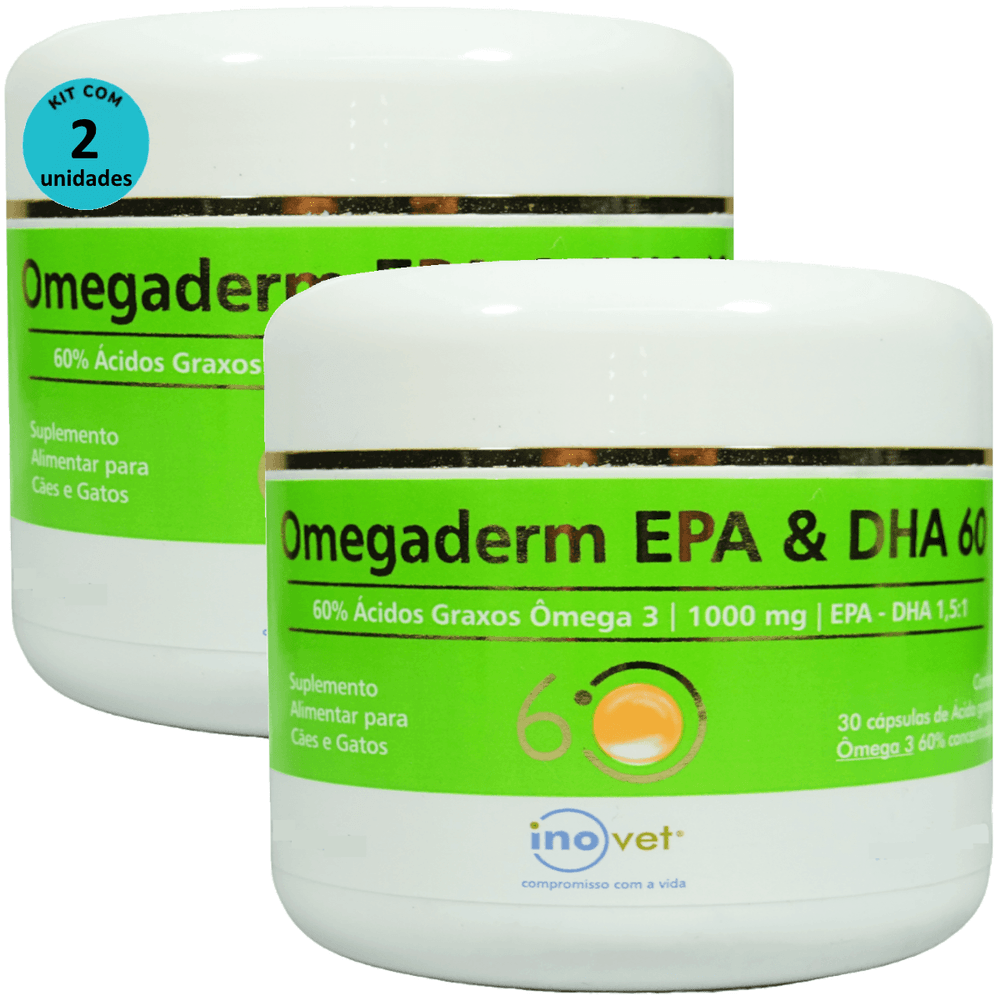 Omegaderm EPA & DHA 60 Suplemento Cães e Gatos 1000mg C/ 30 Cápsulas Kit Com 2