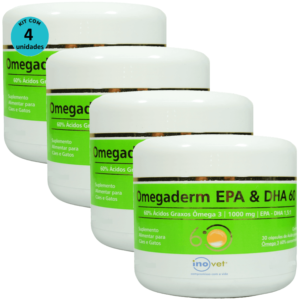 Omegaderm EPA & DHA 60 Suplemento Cães e Gatos 1000mg C/ 30 Cápsulas Kit Com 4