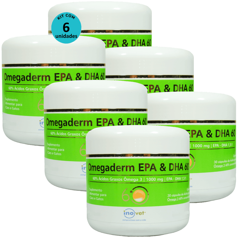 Omegaderm EPA & DHA 60 Suplemento Cães e Gatos 1000mg C/ 30 Cápsulas Kit Com 6