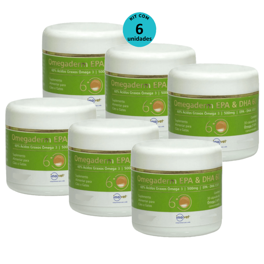 Omegaderm EPA & DHA 60 Suplemento P/ Cães e Gatos 500mg C/ 30 cáp. Inovet Kit com 6