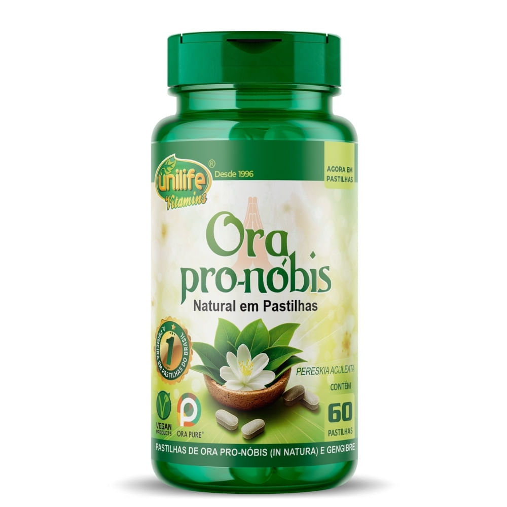 Ora Pro-Nóbis Natural e Gengibre 60 Pastilhas 1000mg Unilife