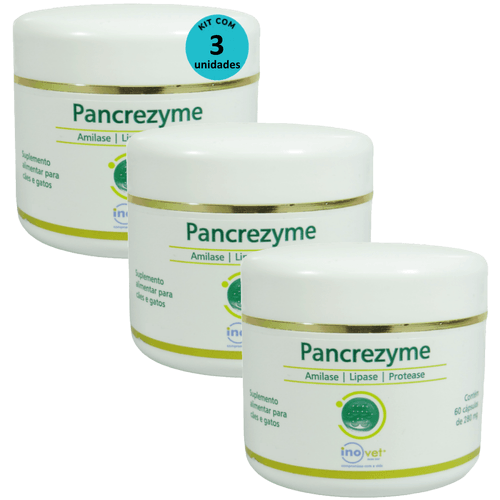 Pancrezyme 60 Cápsulas 280mg Para Cães e Gatos Inovet Kit Com 3