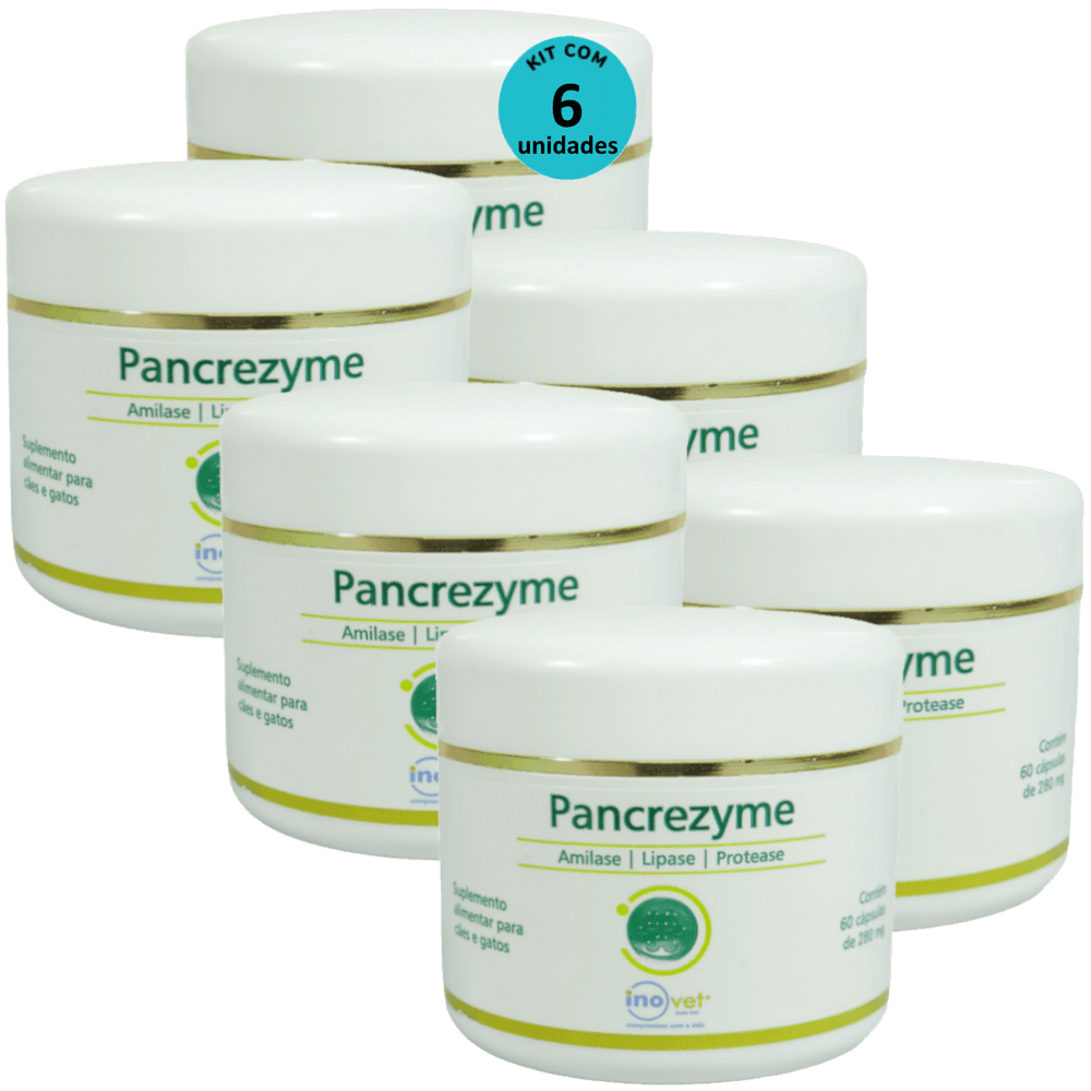 Pancrezyme 60 Cápsulas 280mg Para Cães e Gatos Inovet Kit Com 6
