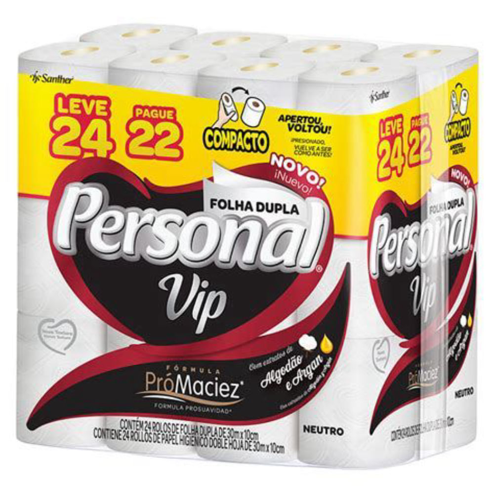 Papel Higiênico Personal 30 Metros c/24 Unidades Folha Dupla Neutro