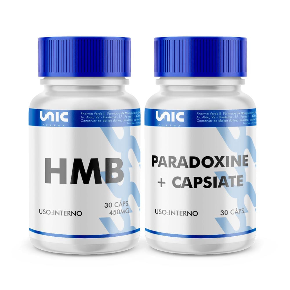 Pradoxine mais capsiate e hmb confira o kit para queima de gordura e definiçãoHMB O HMB é um suplemento anti-catabólico eficiente, porém ainda pouco conhecido de muitos. Ele é uma das grandes recomendações atuais para agir no combate da degradação das proteínas, visando um melhor desenvolvimento e reparação dos músculos antes e depois dos treinos de endurance (aeróbicos). Para entendermos melhor, precisamos lembrar que na prática da musculação o corpo necessita estabelecer a queima da massa gorda, evitando o catabolismo dos músculos para que aconteça a hipertrofia muscular, ou aumento dos músculos, como preferir. Com o intuito de que isso ocorra, a massa magra não se alimenta apenas das proteínas suplementadas, pois outros nutrientes entram em jogo. E não podemos esquecer a ação dos aminoácidos, pois eles formam peptídeos que logo após se transformam em proteínas para o nosso corpo. E o HMB tem destaque quanto a tudo isso. O seu efeito direto para o atleta está em elevar a massa muscular sim, mas também aumentar a força em relação à massa acumulada com apenas 3g diárias ingeridas, ou a quantidade que o seu corpo possa necessitar.Para que serve o HMB?Quando você treina com afinco e insistência, pode desencadear em seu corpo um processo de catabolismo, que significa um desgaste de seu organismo, e resultará em perda de massa corpórea. Muitos fatores estão ligados a esse processo, como má alimentação e maus hábitos em geral que colocam em cheque a recuperação de seu corpo, mas o excesso de treino também é determinante para esse resultado. Então, como treinar de maneira eficiente, mas sem sabotar o seu próprio desempenho? O uso do HMB é justamente para essa finalidade. Também conhecido como Human Muscle Builder, o Ácido beta-hidroxi-beta-metilbutírico, ou suplemento HMB, atua principalmente na reposição de seus níveis proteicos, o que impede que ocorra o processo de catabolismo. O HMB é um composto produzido naturalmente pelo corpo humano em pequenas doses, ou que pode ser também ingerido através de alguns poucos alimentos. Mas a quantidade não é suficiente para que haja um resultado satisfatório quando o assunto é treino. Basicamente, para que ocorra um crescimento muscular significativo você precisa consumir mais proteínas do que perde. Mas as proteínas são utilizadas pelo organismo durante os exercícios físicos, então, para equilibrar essas taxas, muito atletas fazem uso de suplementos como o HMB.Benefícios do HMBAumento da força: Outro resultado decorrente do uso do suplemento HMB é o aumento significativo da força física, o que faz com que esse produto seja muito procurado por pessoas que fazem treinos de resistência física. Ele também atua diretamente na recuperação dos músculos após os exercícios, o que faz com que ele melhore consideravelmente o desempenho do atleta.Redução das dores musculares: Ao tornar os músculos mais resistentes, ele também atua em sua rápida recuperação, o que faz com que os incidentes com dores sejam elevados a um nível quase nulo. A sua base é a partir de um aminoácido chamado leucina, que é comumente encontrado em alimentos ricos em proteína. A sua função é fornecer energia para extrair o melhor do seu corpo prevenindo ou diminuindo os danos musculares.Perda de gordura: Ele também vai atuar diretamente na perda de gordura e no ganho de massa magra, além de reduzir o colesterol considerado ruim. Combinado com uma alimentação equilibrada ele pode ser o estopim que faltava para o sucesso de sua dieta.Mulheres podem tomar HMB?Não há nenhuma contraindicação que impeça o consumo do HMB por mulheres. Ele estimula a força e a resistência, e para aquelas que malham com frequência os resultados serão tão interessantes quanto para os homens. Há ainda o benefício da perda de gordura estimulada pelo suplemento HMB. Como sabemos, o organismo feminino tem mais dificuldades em eliminar gordura e em conquistar massa magra, e por isso mesmo o uso desse anticatabólico pode ser crucial para mulheres que desejam alcançar uma forma física perfeita. Para combinar com o uso frequente de anticoncepcional, no entanto, é indicado que o ginecologista seja consultado, e a dose seja estipulada mediante indicação médica. Muitas pílulas contraceptivas promovem inchaços e aumento de peso, e por isso a utilização simultânea sem o acompanhamento médico pode comprometer o resultado do treino mesmo com a ingestão do HMB.Efeitos Colaterais e contraindicações do HMBQuando você começa a tomar um suplemento, deve se atentar, além de suas funções e resultados possíveis, a todas as contraindicações e efeitos colaterais indicados na embalagem. No caso do suplemento HMB ainda não há notícias de grandes problemas relacionados ao seu consumo. Esse produto repõe elementos que são naturalmente produzidos pelo corpo, e por isso os efeitos colaterais são raros. Alguns estudos inclusive apontam que esse suplemento pode auxiliar no combate a perda muscular decorrente de alguns quadros clínicos, como cancro e HIV. Para uso com essa ou qualquer outra finalidade, no entanto, é de suma importância que um médico seja consultado. Esse diagnóstico diz respeito à utilização do HMB em doses corretas. A superdosagem desse ou de outros suplementos poderá acarretar problemas estomacais ou em diferentes regiões do corpo. Ele é carregado de cálcio, e somente uma quantidade muito elevada desse elemento pode representar algum problema a sua saúde. Por isso mesmo você deve manter as doses dentro dos padrões estipulados pelo fabricante ou pelo seu médico.Benefícios- Potente anti-catabólico;- Ótimo suplemento para quem procura promover o aumento de massa magra;- Previne danos musculares;- Promove o aumento de força muscular.Paradoxine ®O Paradoxine ®, é um ativo inovador, que já é sucesso internacional e agora está disponível com exclusividade na Farmácia E