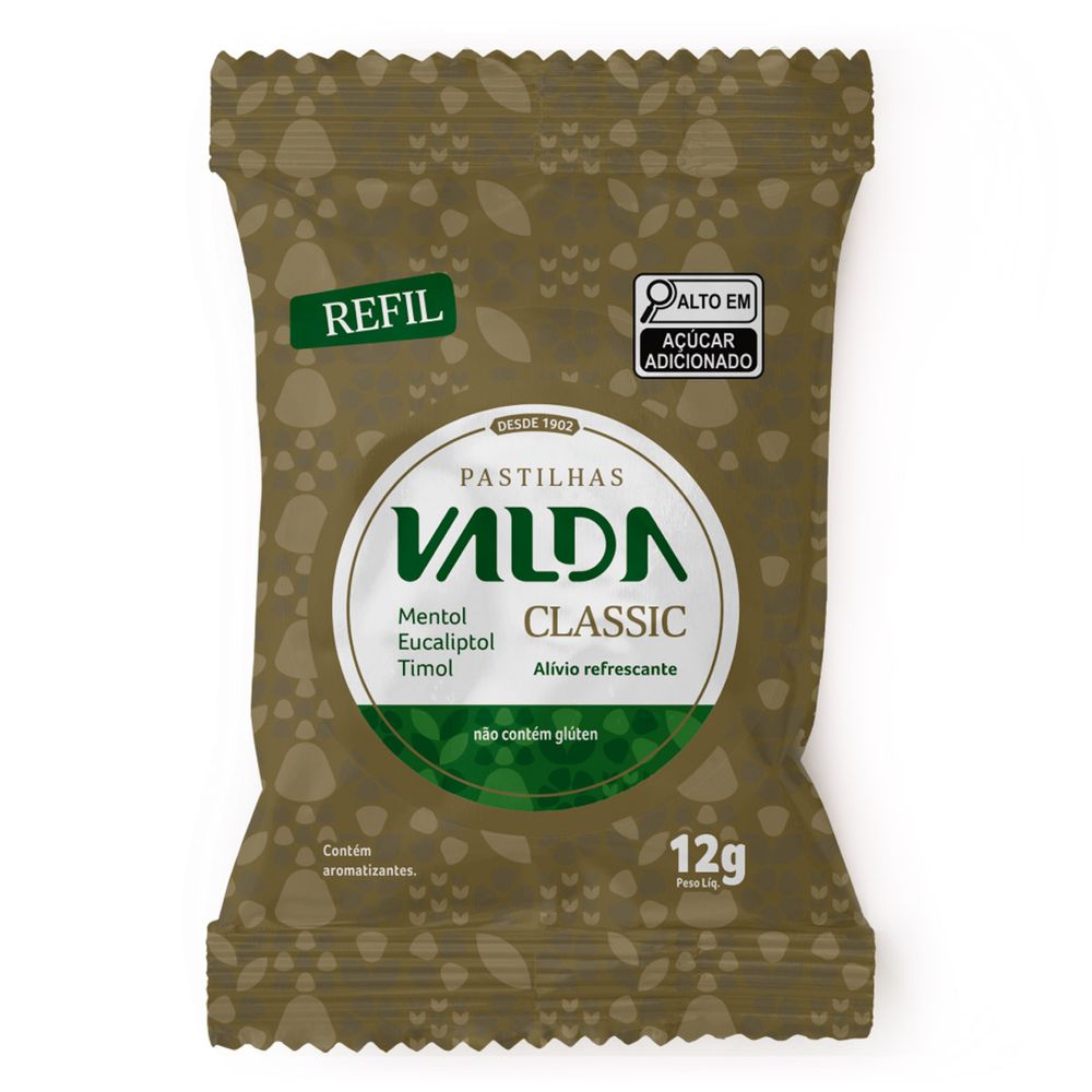 Pastilhas Valda Classic são produzidas com um formato redondo que facilita a liberação do sabor, proporcionando um hálito mais perfumado, oferecendo uma sensação de frescor, com sabor marcante de eucaliptol e timol. Ajuda no alívio de dores de garganta e tosse. Embalagem em sachê com 12g.