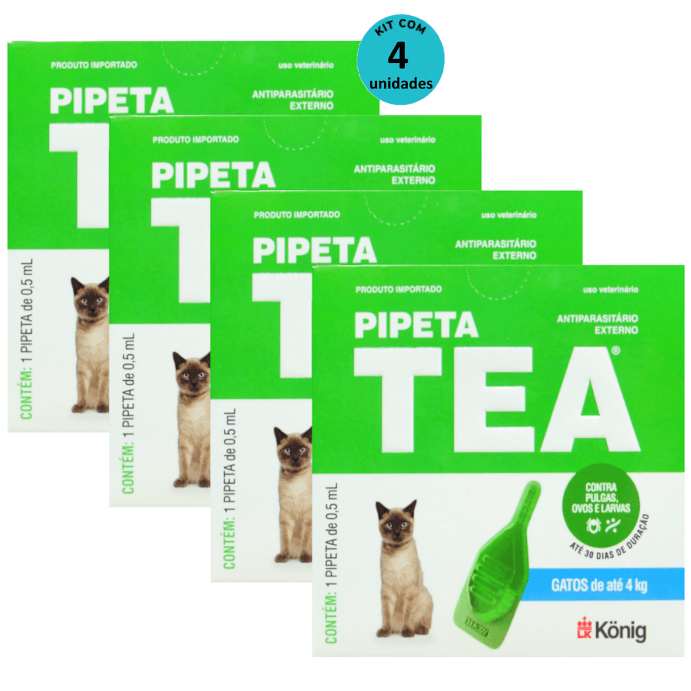 Pipeta Tea 0,5 ml Antiparasitário Contra Pulgas para Gatos de até 4 Kg - König Kit Com 4