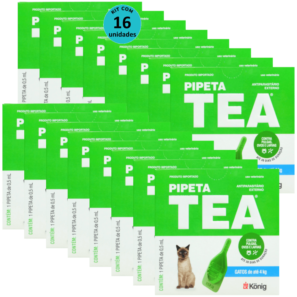 Kit 16 Pipeta Tea 0,5 ml Antiparasitário Contra Pulgas para Gatos de até 4 Kg König
