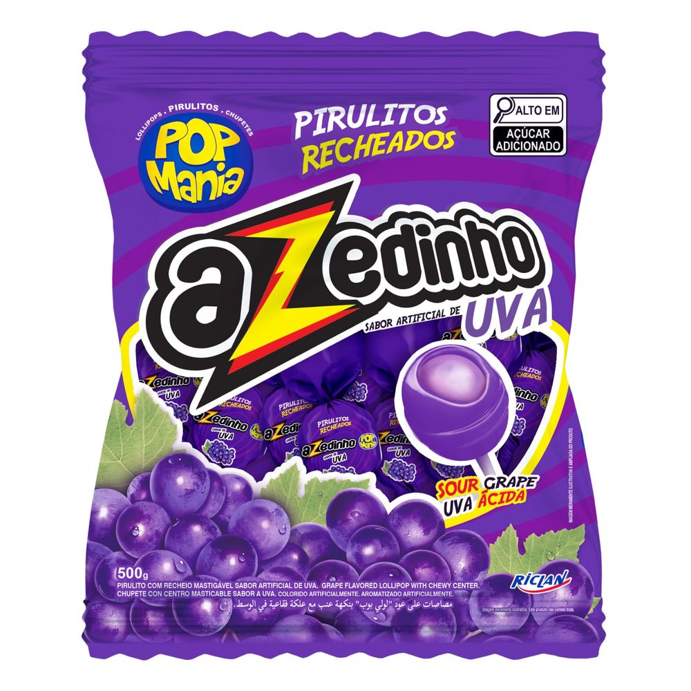 Pirulito Pop Mania sabor Azedinho uva pacote de 500g - Riclan