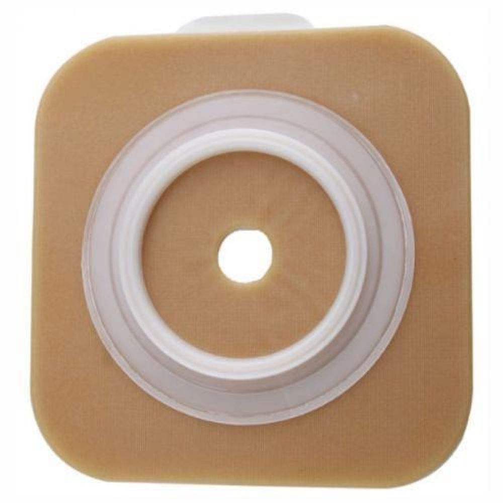 O sistema de duas peças oferece a flexibilidade de colocação da bolsa coletora sem necessidade de remover a placa protetora da pele.