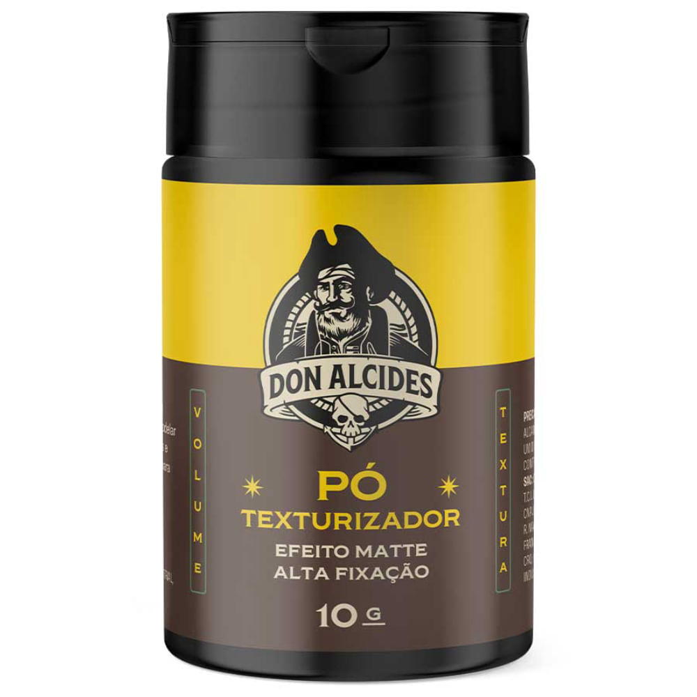 Pomada em Pó Don Alcides Acabamento: Efeito Matte (natural) Alta fixação Essência: Lemon Bone 10g O Pó Texturizador Don Alcides é ideal para modelar e estilizar cabelos finos e leves. Recomendado para todos que desejam praticidade e estilo.