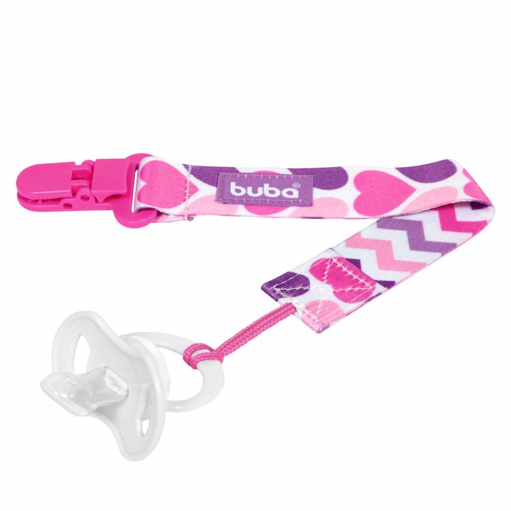 Prendedor De Chupeta Corações Buba Rosa