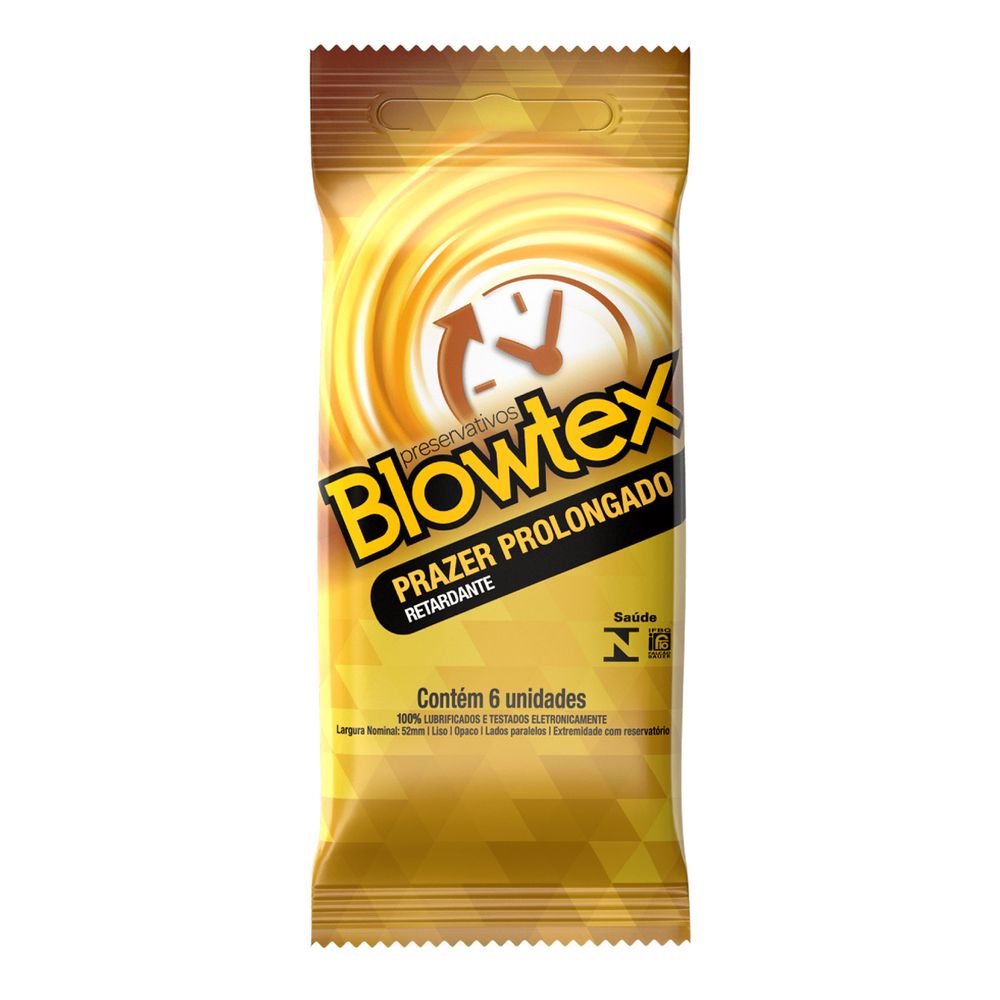 Blowtex Prazer Prolongado possui um gel retardante no interior do preservativo, ajudando a retardar a ejaculação e prolongar o prazer durante a intimidade.
