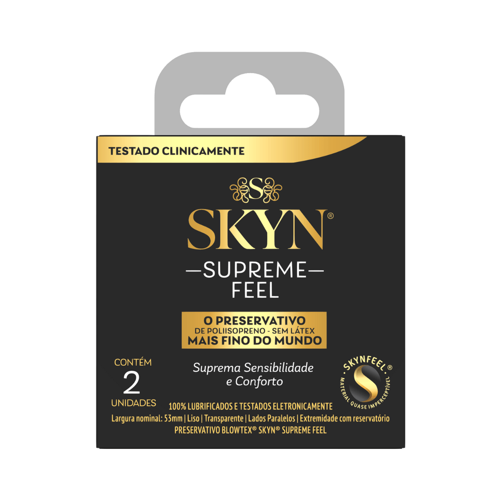 Os preservativos SKYNSUPREME FEEL destinam-se a recobrir o pênis ereto durante a relação sexual, auxiliando na prevenção de doenças sexualmente transmissíveis, no planejamento familiar e para usuários que apresentam alergia ao látex de borracha natural.