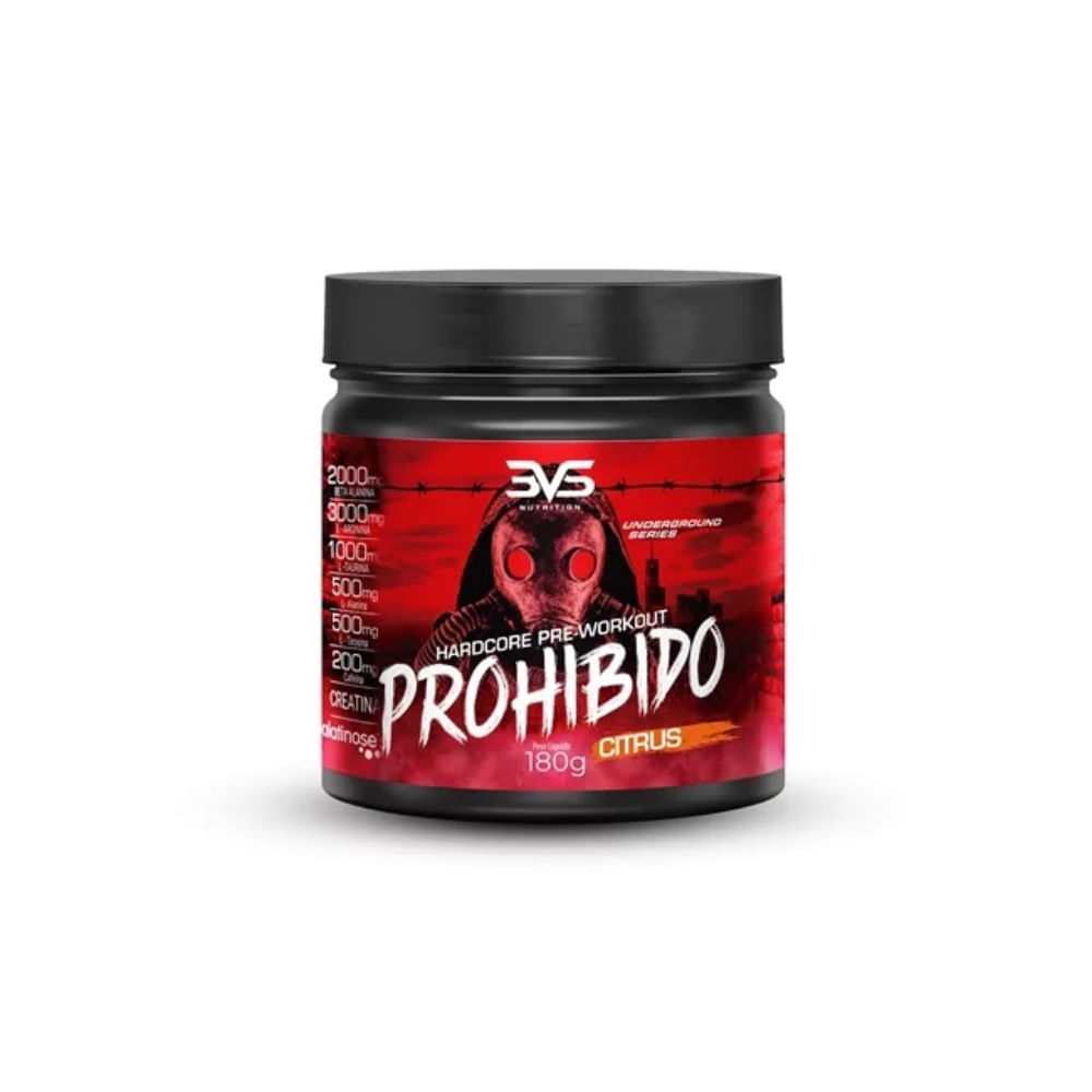 Prohibido HardCore Pré-Workout (180g) - 3VS         Prohibido, um suplemento pré treino que fornece energia do início ao fim dos seus treinos, aumenta a sua força, foco e concentração garantindo os melhores resultados em suas atividades. O produto é composto por beta alanina, arginina, creatina, taurina, L-tirosina e palatinose.       Com Prohibido 3VS Nutrition é o fim da energia baixa e falta de motivação para os treinos. Experimente!   BENEFICIOS   * Fornece energia, resistência e força;* Acelera o metabolismo aumentando a quebra de gordura;* Aumenta a disposição;* Foco e concentração;* Menos fadiga e mais disposição.