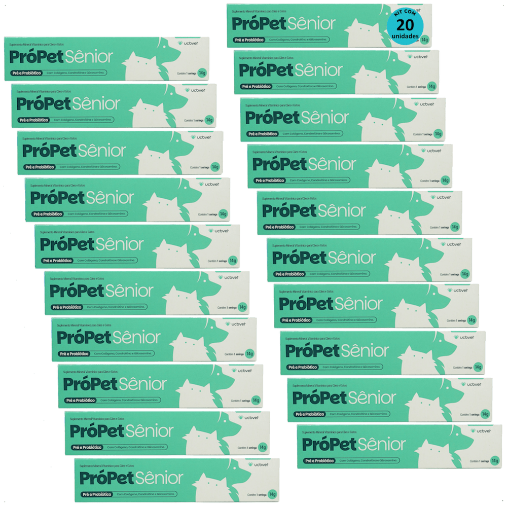 PRÓPET SÊNIOR 14G PRÉ E PROBIÓTICO PARA CÃES E GATOS UCBVET KIT COM 20