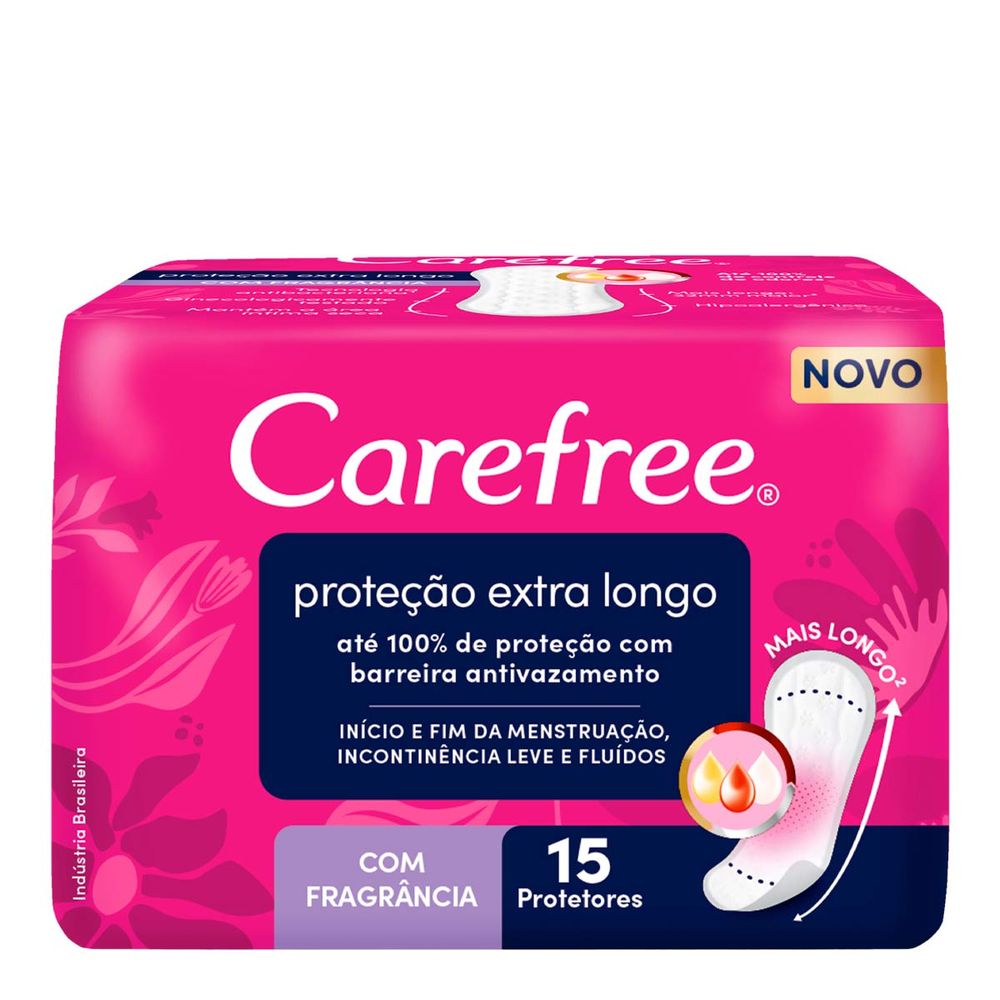 CAREFREE® Proteção Extra Longo é ideal para início e fim de menstruação, incontinência leve e fluxos do dia a dia. Com sua barreira antivazamento, ele oferece até 100% de proteção e controle de odores, mantendo a área íntima seca. Com design mais longo, 32mm maior que Carefree Proteção, ele garante mais segurança e absorção.