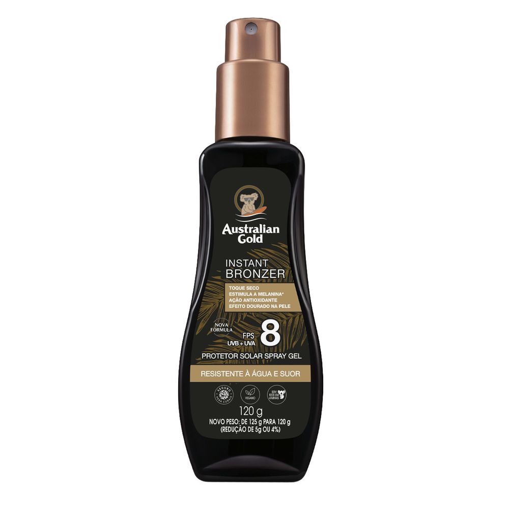 Protetor Solar Autralian Gold Instant Bronzer FPS8 Spray Gel 120g