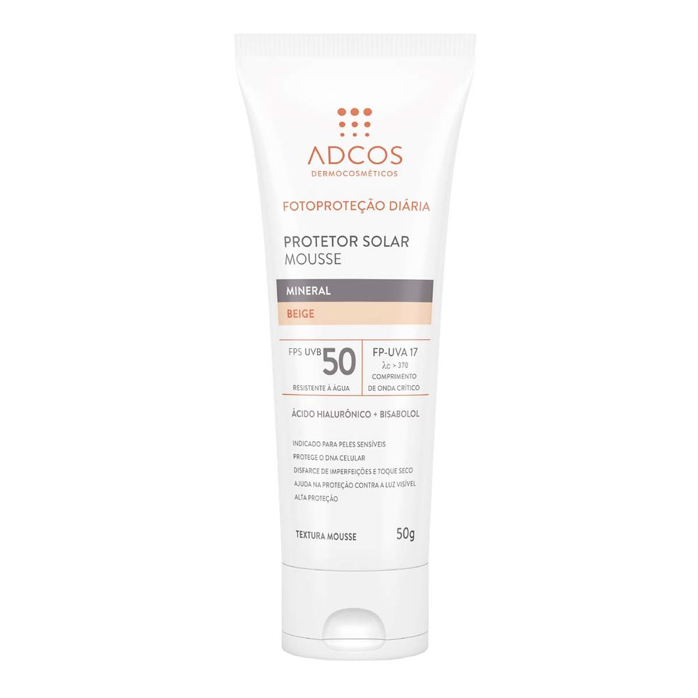 Protetor Solar Facial Adcos FPS 50 Mineral Beige 50g Mousse