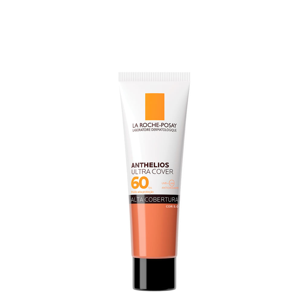 La Roche-Posay Anthelios Ultra Cover Protetor Solar Facial FPS 60 5.0 30g – Para pele negra média a pele negra retintaProtetor solar facial com cor para todos os tipos de pele, incluindo as mais sensíveis. A cor 5.0 é indicada para pele negra média a pele negra retinta, com subtom quente ou neutro, proporcionando cobertura uniforme e natural para tonalidades mais profundas. O Anthelios Ultra Cover FPS 60 Cor 5.0 da La Roche-Posay é mais do que um protetor solar facial: é uma solução completa que combina alta proteção contra raios UVB, UVA e luz visível com performance e cobertura de maquiagem. Desenvolvido no Brasil com tecnologia avançada, sua fórmula inovadora utiliza pigmentos tecnológicos que mimetizam o reflexo natural da luz na pele, proporcionando alta cobertura sem pesar ou craquelar. Ideal para quem busca praticidade e eficácia em um único produto, esse protetor solar facial com cor protege a pele enquanto uniformiza o tom, garantindo um acabamento impecável e com aparência natural por até 12 horas, mesmo em condições desafiadoras como calor e umidade. Com textura leve, oil-free e toque seco, fórmula hipoalergênica e dermatologicamente testada. Confie no cuidado dermatológico que transforma sua rotina, experimente agora e proteja sua pele com o Protetor Solar Facial Anthelios Ultra Cover FPS 60 da La Roche-Posay! Benefícios do Protetor Solar FacialProtege desde a primeira aplicação, com alta cobertura e FPS 60 para proteção contra raios UVB, UVA e luz visível.Combina proteção solar ampla com efeito de maquiagem, garantindo até 12 horas de cobertura uniforme e duradoura.Textura oil-free e toque seco, ideal para uso diário, com fórmula leve que não craquela nem pesa na pele. Ação/Resultado dos AtivosDesenvolvido no Brasil com tecnologia avançada, sua fórmula inovadora utiliza pigmentos tecnológicos que mimetizam o reflexo natural da luz na pele, proporcionando alta cobertura sem pesar ou craquelar.A fórmula é enriquecida com pigmentos que se adaptam ao tom da pele, promovendo acabamento natural e uniforme, além de oferecer alta performance em condições de calor e umidade. Como Usar o Protetor Solar FacialAplique o Protetor Solar Facial com Cor FPS 60 La Roche-Posay Anthelios sobre a pele limpa e seca, 30 minutos antes da exposição ao sol.Reaplique após sudorese intensa, após nadar, após secar-se com toalha ou durante exposição prolongada ao sol.Evite o contorno dos olhos e, em caso de contato, enxágue imediatamente. Indicação de UsoIndicado para uso adulto. O Anthelios Ultra Cover FPS 60 é indicado para quem deseja alta proteção solar associada à cobertura de maquiagem, com acabamento natural e textura confortável.Pode ser usado diariamente em todos os tipos de pele, inclusive as mais sensíveis, garantindo proteção contra raios UVB, UVA e luz visível.