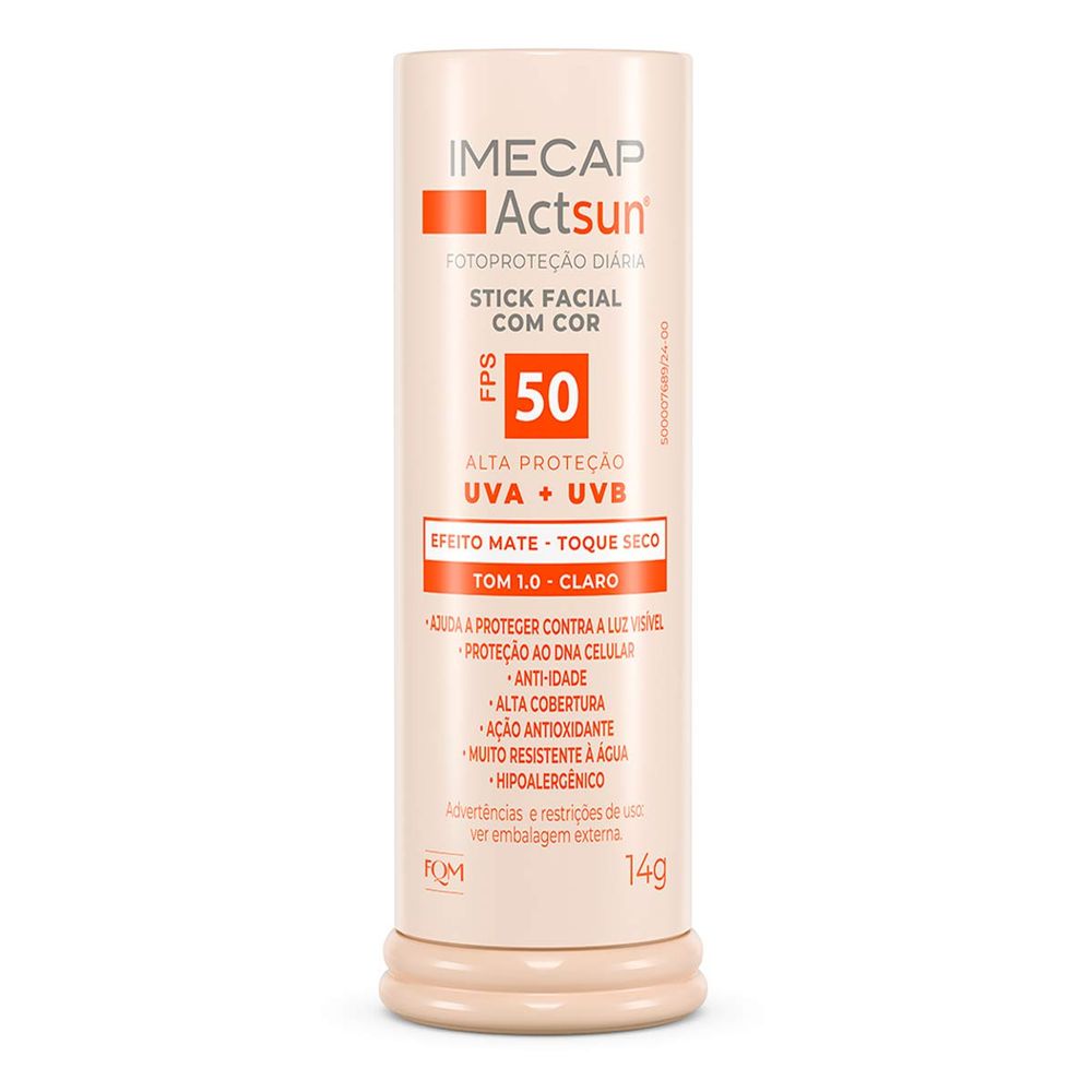 Protetor Solar Facial Imecap Actsun FPS 50 Efeito Mate Cor 1.0 Claro 14g Bastão