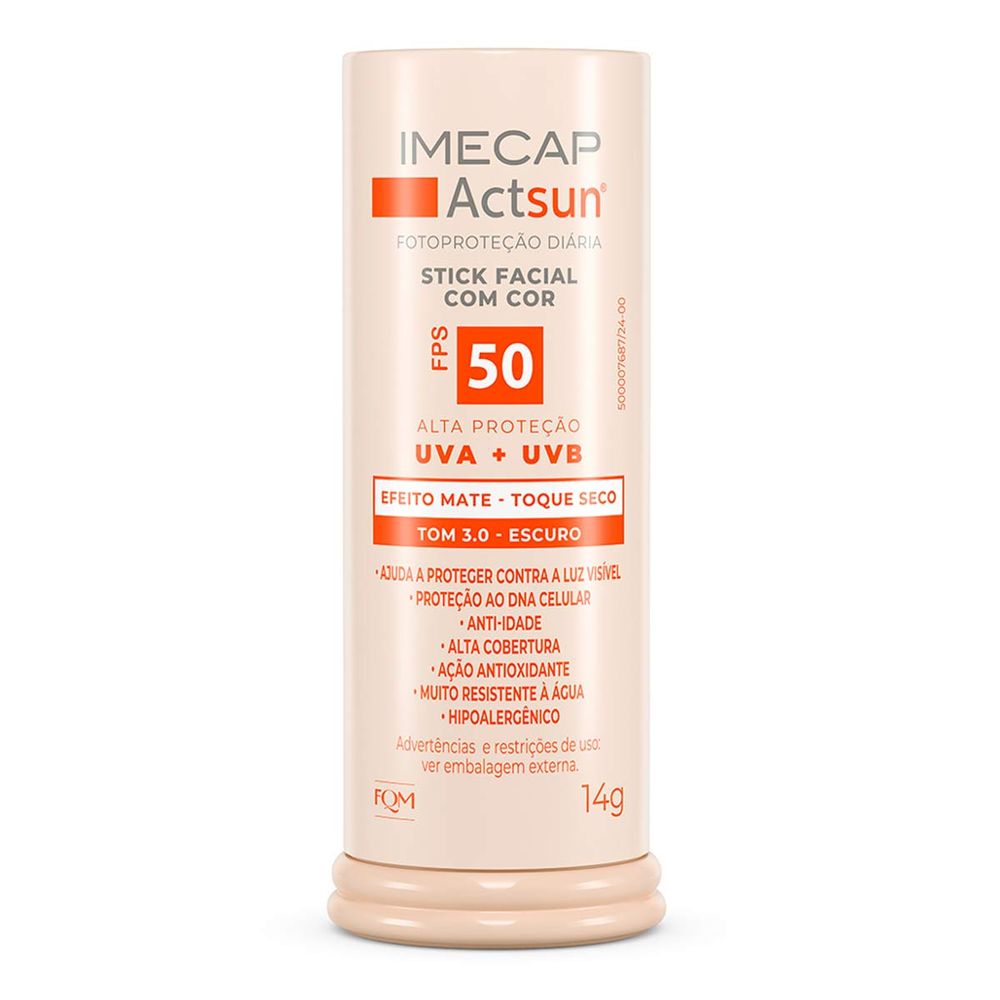 Protetor Solar Facial Imecap Actsun FPS 50 Efeito Mate Cor 3.0 Escuro 14g Bastão