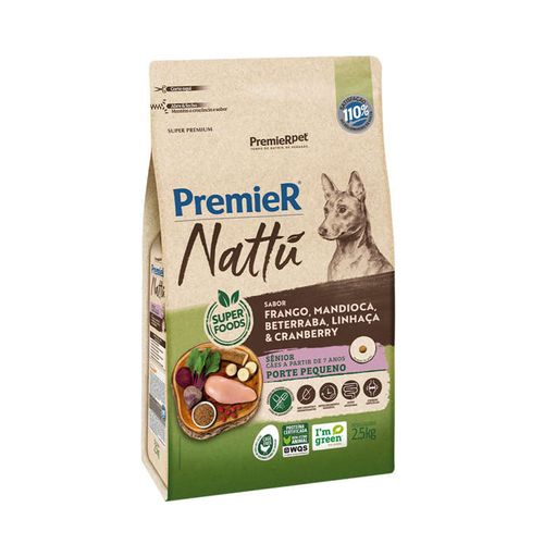 Ração Premier Nattu Cães Adultos Sênior Pequeno Porte Mandioca 10,1kg