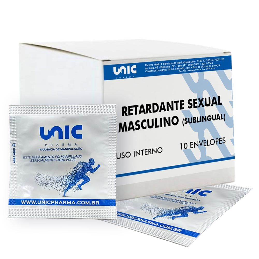 Retardante Sexual Masculino (Sublingual)Composto por ativos que irão auxiliar no prolongamento da ereção e no retardo da ejaculação.O composto Retardante Sexual Masculino da Unicpharma, trata-se de um potencializador, aumentando o fluxo sanguineo no corpo cavernoso do pênis fazendo com que a ereção se torne mais prolongada.Não se trata de tratamento, seu efeito é momentâneo sendo indicado para homens que desejam maximizar sua performance sexual.Contém:CocoabuterolAumento da vasodilatação, aumento de energia e redução da fadiga. Age como um estimulante natural.Arginina AAKGEstimula a vasodilatação e oxigenação muscular, garante máximo desempenho desportivo e sexual, aumenta a resistência física e faz a ereção dos homens se tornarem duradoura.5 HtpAumentar a serotonina que esta ligada ao humor e prazer, proporcionando a sensação de bem estar.Ocasionando a normatização dos níveis hormonais que estão ligados ao aumento da líbido e excitabilidade sexual.CherryPurePromove o aumento de energia, ajudando na perfomance, disposição física e mental. Além disso, regula o estresse.N. Acetil TirosinaÉ um aminoácido que melhora o desempenho físico e mental, reduz a fadiga e gera a sensação de bem estar.GuaranáApresenta altos níveis de cafeína, capazes de atuar diretamente na potencialização dos demais ativos, colaborando para o tratamento de disfunção erétil e impotência sexual.BenefíciosAumentar o fluxo de sangue no pênis e pode auxiliar homens com DE a obter e manter uma ereção;aumentando a energia e disposição;Garante máximo desempenho desportivo e sexual;aumenta a resistência física;faz a ereção em homens se tornarem duradoura. normatiza os níveis hormonais ligados ao aumento da líbido e excitabilidade sexual;regula o estresse;tratamento de disfunção erétil e impotência sexual.PosologiaColocar uma cápsula em baixo da lingua, até que dissolva completamente, de preferência de 15 a 20 minutos antes da relação sexual.Composição SugeridaCocoabuterol5htpCherryPureN.Acetil TirosinaGuaranáArginina AAKGPara que serve o Retardante Sexual Masculino?O Retardante Sexual Masculino (Sublingual) desenvolvido pela Unicpharma, foi elaborado para ajudar homens que sofrem com ejaculação precoce, seus ativos proporcionam o aumento no fluxo sanguíneo no corpo cavernoso do pênis fazendo com que a ereção se torne mais prolongada.O que usar para prolongar a ejaculação?Existe alguns produtos que auxiliam nesse processo, mas é importante lembrarmos que cada caso é um caso, por isso é necessário orientação médica. No caso do Retardante sexual Masculino, é uma excelente alternativa pois aumenta a energia, disposição, colabora no tratamento da disfunção erétil, aumenta o fluxo sanguíneo, tornando a ereção prolongada, dentre outros Benefícios.Como usar o Retardante Sexual Masculino?O Retardante Sexual Masculino sublingual deve ser usado 15 a 20 minutinhos antes da relação, basta colocar a cápsula embaixo da língua e aguardar dissolver por completo.Quando usar o Retardante Sexual Masculino?O Retardante Sexual Masculino é indicado por homens que possuem dificuldade em manter ereção prolongada.Existe contraindicação do Retardante Sexual Masculino?Pessoas que apresentam comorbidades devem procurar um profissional habilitado antes do uso, para uma devida orientação.Onde comprar o Retardante Sexual Masculino?Só na UnicPharma você encontra o Retardante Sexual Masculino, com os menores preços e as melhores condições.*Não se trata de propaganda, e sim de descrição do produto, consulte sempre um especialista. **Venda Sob prescrição de profissional habilitado, podendo este ser o nosso farmacêutico de acordo com a resolução 586/2013 do conselho de farmácia. Consulte-o. Sugestão de uso e benefícios desenvolvidos por profissional habilitado. Todo produto deste site possui dosagens dentro dos padrões usuais.Advertências* Estiver Grávida Ou Amamentando, Consulte Um Médico Antes De Usar Este Produto.* Mantenha Fora Do Alcance De Crianças. Guarde Em local frio e seco. * Não misturar esse medicamento com outro tipo de estimulante drogas ou bebida alcoólica.1. Nunca compre medicamento sem orientação de um profissional habilitado.2. Imagens meramente ilustrativas.s3. É recomendável uma dieta e exercícios físicos para auxiliar a redução de "peso".4. Pessoas com hipersensibilidade à substância não devem ingerir o produto. 5. Em caso de hipersensibilidade ao produto recomenda- se descontinuar o uso e consultar o médico.6. Não use o medicamento com o prazo de validade vencido.7. Manter em temperatura ambiente (15 a 30ºC). Proteger da luz do calor e da umidade. Nestas condições o medicamento se manterá próprio para o consumo respeitando o prazo de validade indicado na embalagem. 8. Todo medicamento deve ser mantido fora do alcance das crianças.9. Este medicamento não deve ser utilizado por mulheres grávidas sem orientação médica.10. Embora não existam contra-indicações relativas a faixas etárias recomendamos a utilização do produto para pacientes de idade adulta.11. Siga corretamente o modo de usar. Não desaparecendo os sintomas procure orientação médica.12. O uso do medicamento durante o período de amamentação também não é recomendado.13. Este medicamento não deve ser utilizado por menores de 18 anos sem orientação médica.14. "SE PERSISTIREM OS SINTOMAS O MÉDICO DEVERÁ SER CONSULTADO"REFERÊNCIASAs Referências Bibliográficas se encontram em nosso departamento técnico farmacêutico, baseadas nas literaturas e materiais de nossos fornecedores.descricaoshopping: Aproveite nosso desconto progressivo a compra de 3 Unidades do mesmo 10% de Desc;