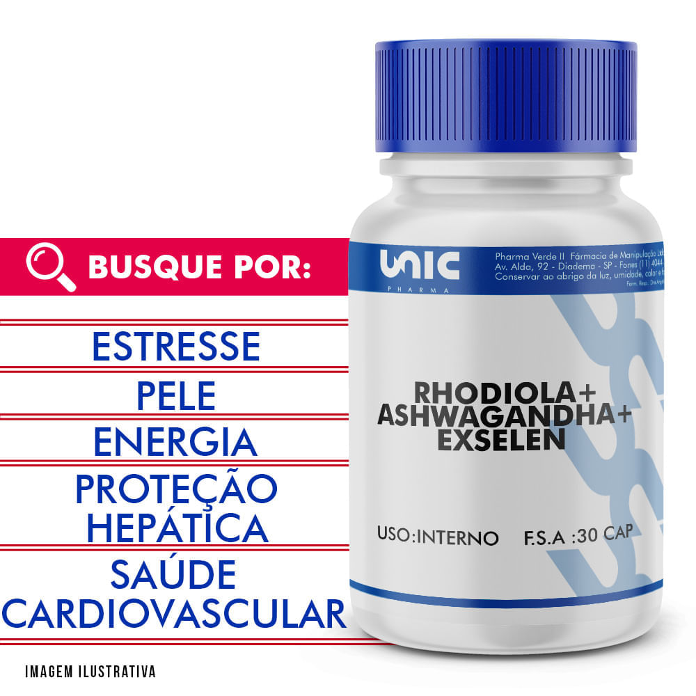 Rhodiola com Ashwagandha com exselen 30 dosesO que é a Rhodiola Rosea ? A Rhodiola é uma planta perene de folhas suculentas, comum em regiões frias do mundo, como o Ártico da Sibéria Oriental, as Montanhas Rochosas da América do Norte e as montanhas da Ásia Central e Europa. Não é à toa que esta planta da família Crassulaceae recebeu o nome de Raiz de Ouro: Há séculos suas raízes da têm sido usadas pelas culturas da Europa Oriental e da Ásia para melhorar a resistência física, a disposição, a longevidade e a resistência a doenças provocadas pelas altitudes. A característica comum de todos esses benefícios está na origem do seu benefício: o seu potencial adaptogênico. A Rodiola rósea possui compostos que são capazes de prevenir os efeitos físicos e químicos do cansaço e do estresse.O que são substâncias adaptogênicas? São consideradas adaptogênicas um grupo de plantas cujo extrato contém substâncias que aumentam a resistência global do organismo e ajudam a normalizar as funções vitais do corpo. As ervas adaptogênicas permitem que o nosso corpo adapte-se à ação do estresse. Sempre que houver uma condição estressante, a ingestão de adaptogênicos produz algum grau de adaptação no corpo. Os efeitos adaptogênicos têm sido reconhecidos tradicionalmente como a indução de uma imunidade e um efeito de normalização do organismo. Este conceito é amplamente difundido tradicionalmente ao redor da Europa e leste da Ásia. Especula-se que substâncias adaptogênicas tenham sido usadas tradicionalmente por Vikings escandinavos para preservar a robustez física. Tais substâncias passaram a ser buscadas, estudadas e incorporada primeiro à medicina chinesa e, embora mais pesquisas sejam necessárias para determinar o mecanismo principal de ação dos adaptogênicos, sabemos que a Rhodiola é uma das principais ervas com esta característica. A Rhodiola deixou para traz o caráter popular para se tornar alvo de estudo de pesquisas modernasAo longo da evolução das espécies, a Rhodiola rosea adaptou-se às condições adversas da altitude como o frio extremo, pouco oxigênio, pouca chuva e irradiação intensa do sol. A planta desenvolveu a produção de um grupo de compostos protetores poderosos que têm diversos efeitos benéficos em animais e seres humanos. Os gregos já se impressionavam com a versatilidade da erva há mais de dois mil anos e seus benefícios se estenderam até os tempos atuais onde pesquisas modernas, baseadas em ensaios clínicos controlados, estudam as potenciais aplicações médicas desta planta singular. Pesquisas identificaram a presença de seis grupos distintos de compostos químicos na raiz da Rhodiola rosea: -Fenilpropanóides -Derivados de feniletanol -Flavonoides -Monoterpernes -Triterpenes -Ácidos fenólicos Para que serve a Rhodiola Rósea?Rhodiola é uma planta cuja raiz é usada como medicamento. O extrato da raiz de Rhodiola serve para tratar muitas condições, mas ainda é preciso que mais pesquisas sejam feitas para que haja evidências científicas suficientes para determinar se ela é realmente eficaz. A Rhodiola é usada para aumentar a energia, resistência, força e capacidade mental. Ela é reconhecida como um adaptogênico e serve para ajudar o corpo a se adaptar a resistir ao stress ambiental, físico, químico. Ele também é usada para melhorar o desempenho atlético, encurtando o tempo de recuperação após treinos longos, melhorar a função sexual, para a depressão, e para doenças do coração, como batimento cardíaco irregular e colesterol alto. Algumas pessoas usam Rhodiola para tratamento de câncer, tuberculose e diabetes, prevenção de gripes e resfriados, envelhecimento e danos no fígado. Ela também é usada para melhorar a audição, fortalecer o sistema nervoso e aumentar a imunidade. Benefícios da Rhodiola Rosea e indicaçõesA parte da erva que é utilizada para a preparação de extrato de Rhodiola é a raiz. Dela provêm os vários benefícios atribuídos ao seu consumo.Estimulante da memória e aprendizagemPesquisas demonstraram que Rhodiola rosea melhora a capacidade de memorização e concentração por períodos mais prolongados. Ela aumenta a atividade bioelétrica do cérebro o que melhora a sua energia para a concentração e a retenção memória. Em um estudo recente, quarenta alunos foram escolhidos aleatoriamente para receber 50 mg de extrato de Rhodiola ou placebo duas vezes ao dia por um período de 20 dias. Notou-se que os alunos que receberam o placebo demonstraram melhorias significativas na aptidão física, na função psicomotora, no desempenho mental, e no bem-estar geral. Os indivíduos que receberam o extrato de Rhodiola rosea também relataram os mesmos resultados e adicionalmente também apresentaram redução estatisticamente significativa da fadiga mental, melhores padrões de sono, maior estabilidade do humor e uma maior motivação para estudar. Os valores médios mostraram, que os alunos que receberam o extrato de Rodiola foram superiores aos outros. Dois estudos realizados com a Rhodiola rosea em ratos propuseram vantagens para várias áreas da aprendizagem e memória, em circunstâncias experimentais específicas. A administração oral de Rhodiola rosea na dosagem de 0,1 ml por dia durante um período de 10 dias levou a uma leve melhora nessas funções dos roedores, como por exemplo, na memória de longa data.Protetora do sistema cardíacoPesquisas já demonstraram que o uso de Rhodiola rosea é eficaz para diminuir ou eliminar danos nos tecidos cardiovasculares derivados do estresse e de trauma. Sua ação está na sua capacidade para diminuir a quantidade de catecolaminas e corticosteroides liberados pelas glândulas suprarrenais durante o estresse. A presença anormal destes hormônios do estresse causa elevação da pressão arterial, do colesterol e dos níveis de potássio. Fatores que aumentam o risco para doenças cardíacas. Foi c
