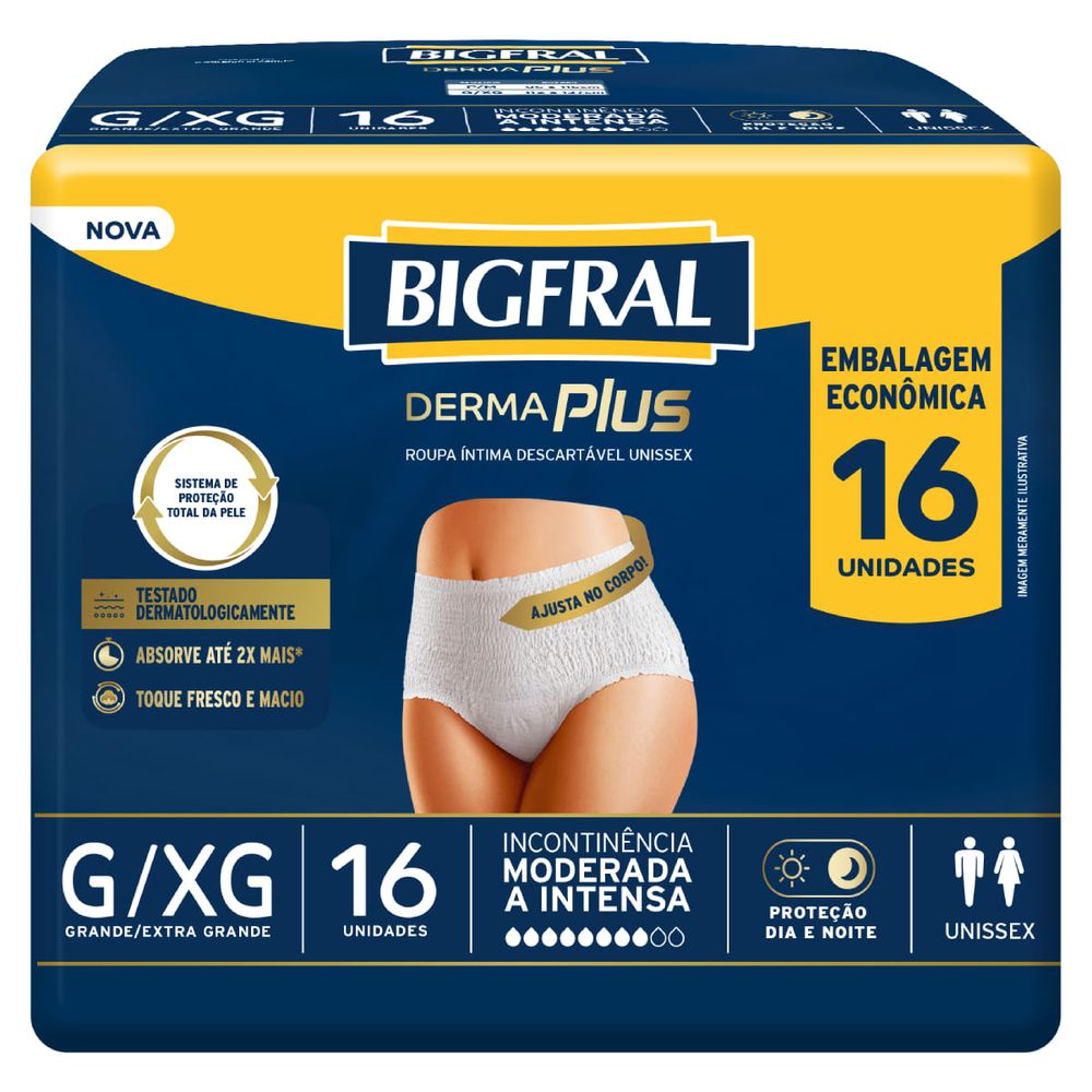 Roupa Íntima Derma Plus Bigfral - Tamanho G/XG - 16 unidades