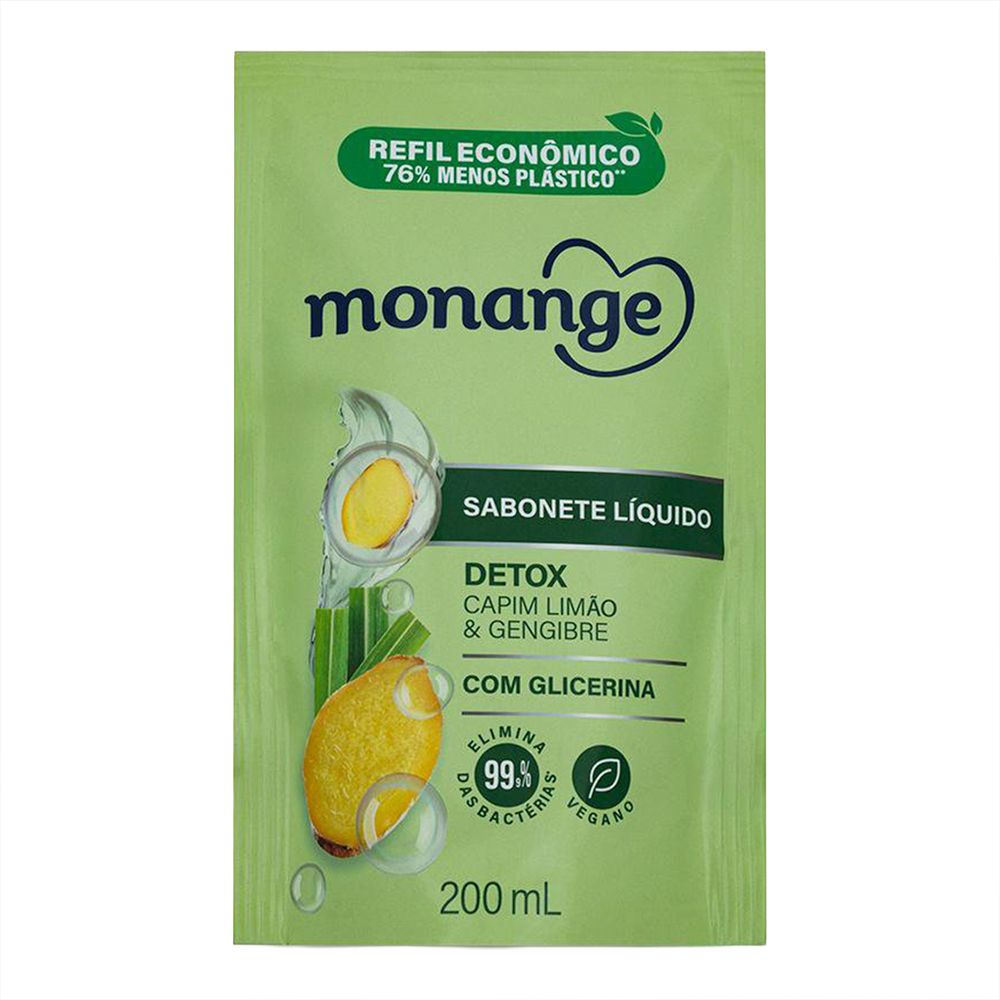 Sabonete Líquido Monange Detox Capim-Limão & Gengibre 200ml Refil