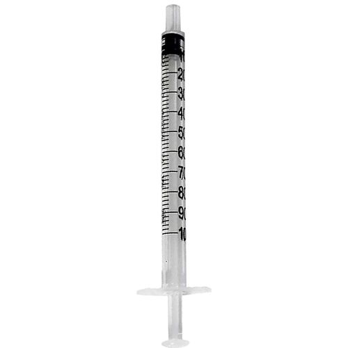 - Seringa feita em plástico atóxico, apirogênico, esterilizada e embalada individualmente, sem agulha