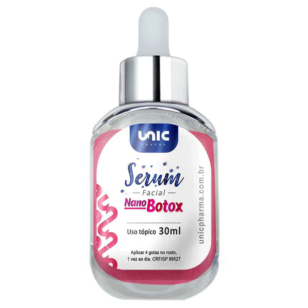 Sérum NanoBotoxTecnologia inovadora o Serum Unic garante em sua formulação, é capaz de penetrar na pele de maneira uniforme, atua no controle da acne e de manchas, proporcionando uma pele mais radiante. Dessa forma, ele age diminuindo a contração do músculo, mesmo mecanismo do botox, fazendo assim com que diminua a formação das rugas e linhas de expressão. Além de regenerar as células e estimular sua substituição contribuindo para a eliminação de cicatrizes de forma notável e eficiente, também é capaz de provocar efeitos de uniformização da textura e do tom da pele, tornando-a revitalizada e regenerada.Nano BTXSua formulação é capaz de penetrar na pele de maneira uniforme, para diminuir as rugas e linhas de expressão no pescoço. Além de atuar no controle da acne e de manchas, proporcionando uma pele mais radiante.TGFB3Fator de Crescimento Transformador é um ativo que atua no organismo como regenerador, estimula a renovação celular e a síntese de colágeno, substitui tecidos danificados por renovados e auxilia na cicatrização e previne fibrose.BenefíciosEfeito Botox;Reduz as rugas e linhas de expressões;Auxilia na redução dos poros;Ajuda no combate das manchas;Auxilia no tratamento de dermatite atópica;Ação hidratante;Ajuda no tratamento da rosácea.PosologiaAplicar na pele 4 gotas 1x ao dia.Composição SugeridaNano BTX, TGFB3O que é Sérum NanoBotox (efeito botox)?Enquanto o botox é uma substância injetável (toxina botulínica), que tem a capacidade de paralisar a musculatura, eliminando rugas e linhas de expressão, o Sérum NanoBotox possui um efeito muito parecido, gerando resultados semelhantes.Qual é a ação do Sérum NanoBotox (efeito botox)?Além de auxiliar na diminuição das manchas, clareando a pele e diminuindo os poros, ajudando a deixá-los imperceptíveis. Também proporciona ação hidratante, problemas como rosácea e dermatite atópica também podem ser atenuados com o uso frequente desse produto de absorção super-rápida.Como funciona o Sérum NanoBotox (efeito botox)?Seu uso, proporciona um efeito botox, sem a necessidade de um procedimento estético injetável, além de ajudar na redução de manchas escuras na pele, e ser um tratamento de rugas e linhas de expressões. É a inovação que a pele precisa para se manter ainda mais bonita e revigorada.Qual a diferença do Sérum NanoBox para os demais séruns?A diferença entre o Sérum Nano BTX e os cosméticos convencionais está em sua formulação, isso porque conta com a tecnologia Nano BTX e TGFB3 que associados estimulam a produção de colágeno, aumentando a elasticidade da pele proporcionando um tratamento eficaz, considerado um botox sem agulhas.O Sérum NanoBotox auxilia no tratamento de acnes?Sim. O Sérum NanoBotox, ajuda na diminuição dos poros da pele, age no tratamento de acnes e hipercromias pós inflamatórias, ajuda no controle de dermatite atópica e no tratamento da rosácea. Proporcionando também alívio das manchas, promovendo uma pele ainda mais rejuvenescida.*Não se trata de propaganda, e sim de descrição do produto, consulte sempre um especialista. **Venda Sob prescrição de profissional habilitado, podendo este ser o nosso farmacêutico de acordo com a resolução 586/2013 do conselho de farmácia. Consulte-o. Sugestão de uso e benefícios desenvolvidos por profissional habilitado. Todo produto deste site possui dosagens dentro dos padrões usuais.Advertências* Estiver Grávida Ou Amamentando, Consulte Um Médico Antes De Usar Este Produto.* Mantenha Fora Do Alcance De Crianças. Guarde Em local frio e seco. * Não misturar esse medicamento com outro tipo de estimulante drogas ou bebida alcoólica.1. Nunca compre medicamento sem orientação de um profissional habilitado.2. Imagens meramente ilustrativas.s3. É recomendável uma dieta e exercícios físicos para auxiliar a redução de "peso".4. Pessoas com hipersensibilidade à substância não devem ingerir o produto. 5. Em caso de hipersensibilidade ao produto recomenda- se descontinuar o uso e consultar o médico.6. Não use o medicamento com o prazo de validade vencido.7. Manter em temperatura ambiente (15 a 30ºC). Proteger da luz do calor e da umidade. Nestas condições o medicamento se manterá próprio para o consumo respeitando o prazo de validade indicado na embalagem. 8. Todo medicamento deve ser mantido fora do alcance das crianças.9. Este medicamento não deve ser utilizado por mulheres grávidas sem orientação médica.10. Embora não existam contra-indicações relativas a faixas etárias recomendamos a utilização do produto para pacientes de idade adulta.11. Siga corretamente o modo de usar. Não desaparecendo os sintomas procure orientação médica.12. O uso do medicamento durante o período de amamentação também não é recomendado.13. Este medicamento não deve ser utilizado por menores de 18 anos sem orientação médica.14. "SE PERSISTIREM OS SINTOMAS O MÉDICO DEVERÁ SER CONSULTADO".REFERÊNCIAAs Referências Bibliográficas se encontram em nosso departamento técnico farmacêutico, baseadas nas literaturas e materiais de nossos fornecedores.descricaoshopping: Aproveite nosso desconto progressivo a compra de 3 Unidades do mesmo 10% de Desconto, unicpharma refer6encia em manipulado.;