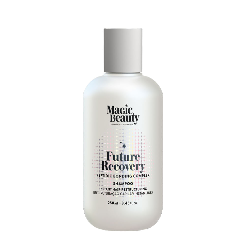 Shampoo Magic Beauty Future Recovery 250ml – Reconstrução Capilar, Fortalecimento Molecular e Brilho IntensoShampoo indicado para cabelos severamente danificados, frágeis ou com tendência à quebra, o Shampoo Magic Beauty Future Recovery 250ml promove reconstrução profunda da fibra capilar, fortalece os fios desde a raiz e proporciona maciez e brilho intenso. Sua fórmula reestruturante atua em nível molecular, restaurando a resistência natural dos fios e reduzindo significativamente a quebra e as pontas duplas. Desenvolvido com uma combinação avançada de bioativos e agentes reconstrutores, o Shampoo Magic Beauty Future Recovery oferece uma experiência de tratamento intensivo, ideal para recuperação de cabelos quimicamente tratados, desidratados ou expostos a processos térmicos. A Tecnologia Molecular Repair penetra profundamente na cutícula capilar, promovendo reparo estrutural interno e selamento das áreas danificadas. O produto é livre de parabenos, dermatologicamente testado e Cruelty Free, garantindo cuidado com eficácia ética e segura.Benefícios do ShampooFortalecimento da fibra capilar, reduzindo a quebra em até 70% após 4 semanas de uso contínuo.Reconstrução molecular que restaura a resistência e a elasticidade dos fios.Redução de 85% do frizz, graças ao selamento eficaz da cutícula capilar.Brilho intenso visível já na primeira lavagem, resultado da reorganização das camadas da fibra.Maciez e sedosidade prolongadas, com melhora da textura em 100% dos fios.Limpeza suave que não agride o couro cabeludo, mantendo o equilíbrio do pH.Hidratação profunda que dura até 72 horas, graças à ação de umectantes de alta performance.Ação/Resultado dos AtivosQueratina hidrolisada: Penetra na fibra capilar, preenchendo fissuras e recuperando a força dos fios danificados.Complexo Bio-Repair: Combinação de aminoácidos e peptídeos que estimulam a reestruturação interna da fibra.Lipídios Essenciais: Repõem a camada lipídica natural da cutícula, protegendo contra agressões externas.Tecnologia Molecular Repair: Atua diretamente nas ligações fragilizadas da fibra, reconstruindo a matriz capilar.Como Usar o Shampoo Magic Beauty Future RecoveryUmedeça bem os cabelos com água morna para abrir as cutículas capilares.Aplique uma quantidade generosa do shampoo e massageie suavemente o couro cabeludo com as pontas dos dedos.Deslize a espuma pelo comprimento e pontas, garantindo cobertura uniforme em todo o fio.Deixe agir por 3 minutos para máxima absorção dos ativos reconstrutores.Enxágue completamente até remover todo o resíduo do produto.Certificações: Cruelty Free;Itens Inclusos: 1 Shampoo Magic Beauty Future Recovery 250 ml.;Observações: Imagem Meramente Ilustrativa.;Gênero: Unissex;Linha: Future Recovery;Categoria: Shampoos;Tipo de Cabelo: Danificados;Tipo de Cabelo: Danificados ou Quebradiços;