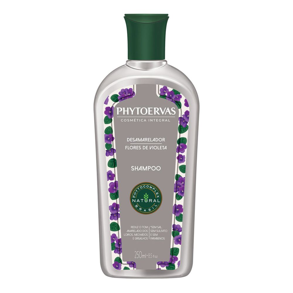 O Shampoo Phytoervas Violeta Desamarelador foi desenvolvido para cabelos claros, com mechas ou luzes. Possui em sua fórmula o complexo de flores de violeta, que atua matizando fio a fio e eliminando o tom desbotado. Os cabelos ficam hidratados e luminosos. O frasco contém 250ml.